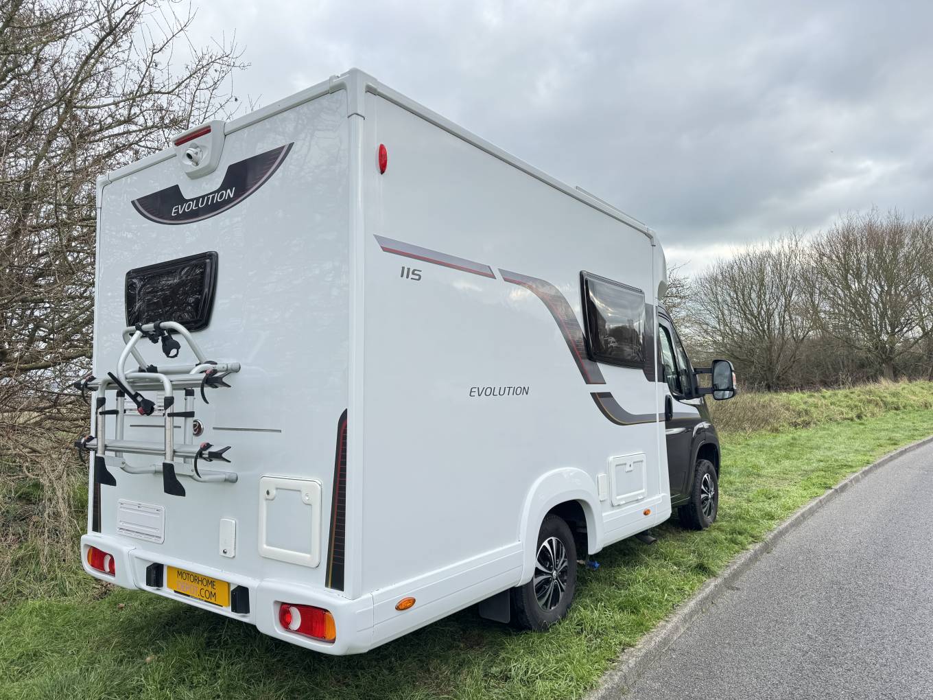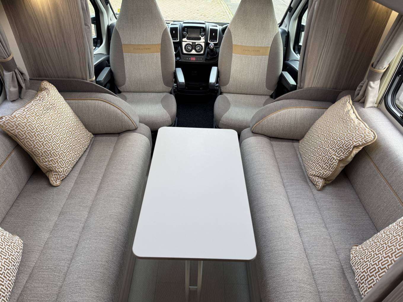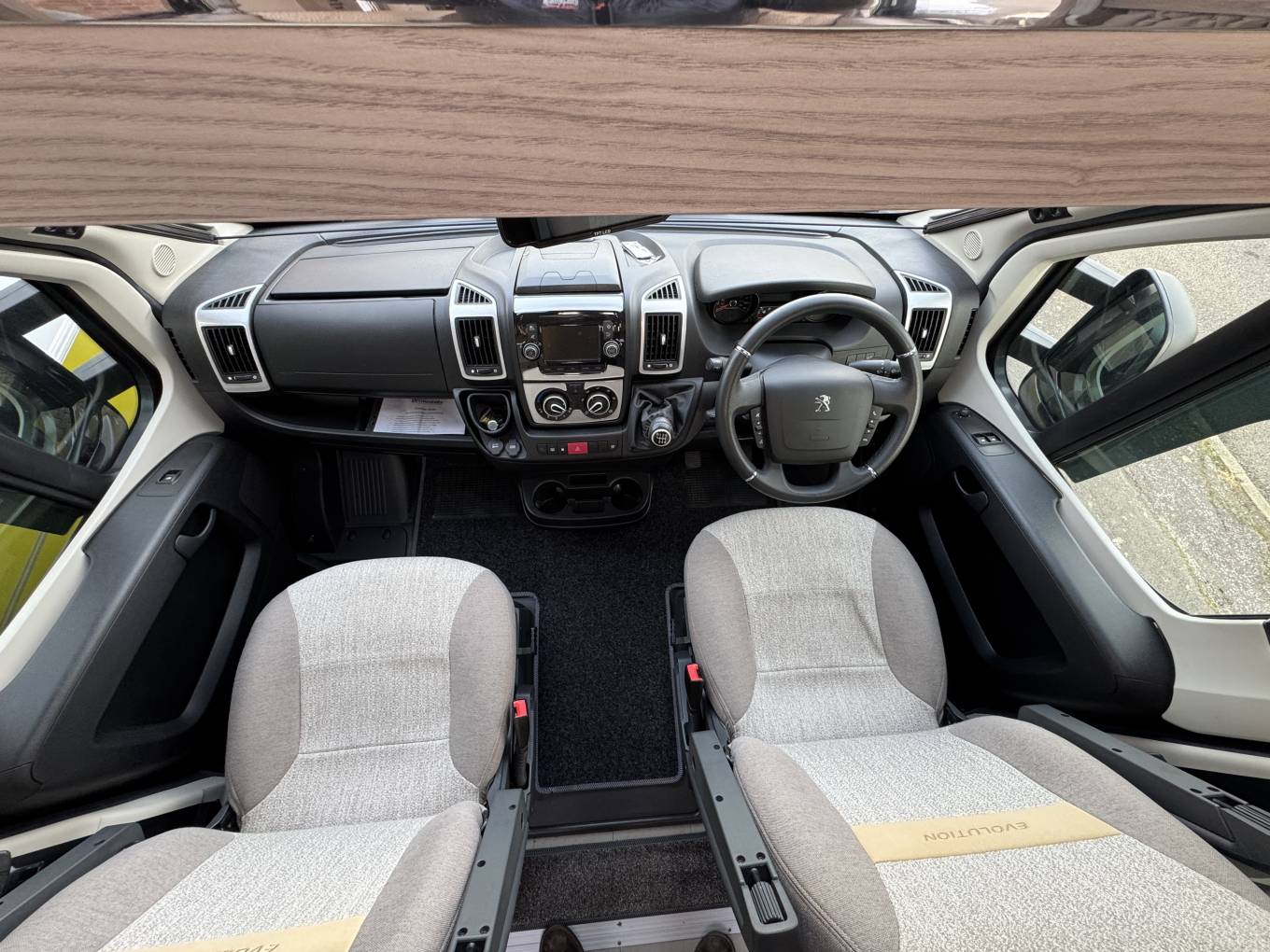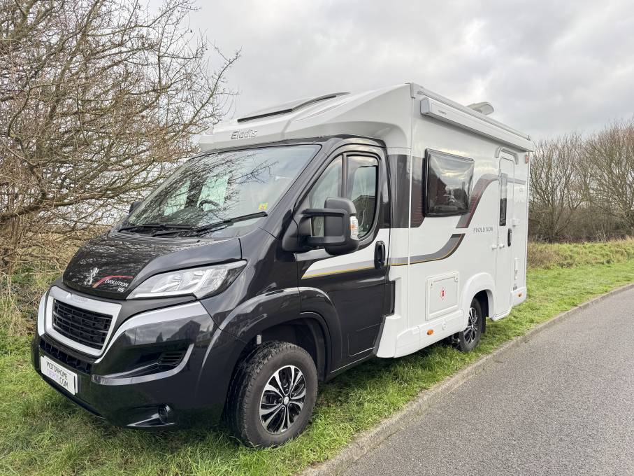 The Elddis Evolution 115 a 2 berth luxury low profile motorhome in lovely condition. Based on the ever popular Peugeot 2.2 TDI 140 Bhp engine in its Euro 6 guise with Ad-Blue & a six speed manual gearbox. It has had its first mechanical service and second habitation check in 06/24. The cab benefits from air-conditioning, power assisted steering, electric windows front; electric adjustable mirrors, central locking front, reverse camera screen, Peugeot factory fitted multi media centre including: Radio, Bluetooth phone & streaming, & navigation. Remis blinds to front & side windows.