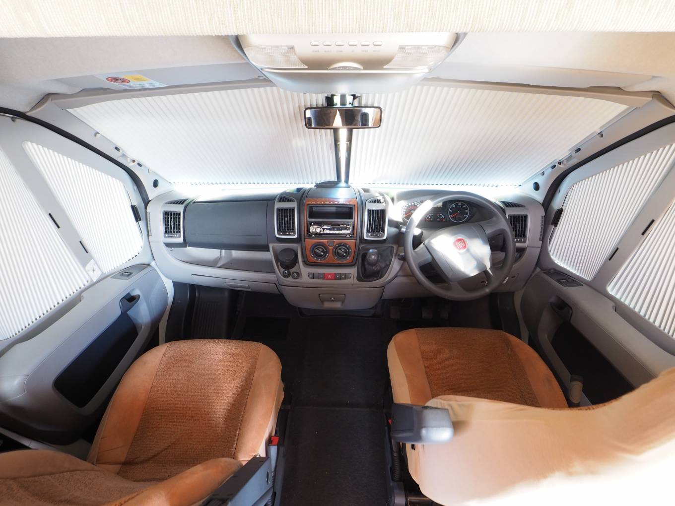 Motorhome Depot Wrexham & Gwynedd are please to offer this popular and sought after 2 Berth motorhome from Auto-Trail. In lovely order throughout it benefits from an open and spacious layout and has only covered 26000 miles from new. Last serviced in June 2024 with a timing belt change it has an MOT until June 2025. Weighs in at 3500kg so can be driven on a standard UK license and at 6.44m long it is compact enough to fit on most standard driveways. Plenty of driver and passenger comfort up front with cab air con, cruise control and electric windows and built in radio. The cab windows have built in Remis concertina blinds for privacy. The cab seats have had fitted seat covers with the original fabric underneath, that matches rthe rear sofas, and is in great condition.