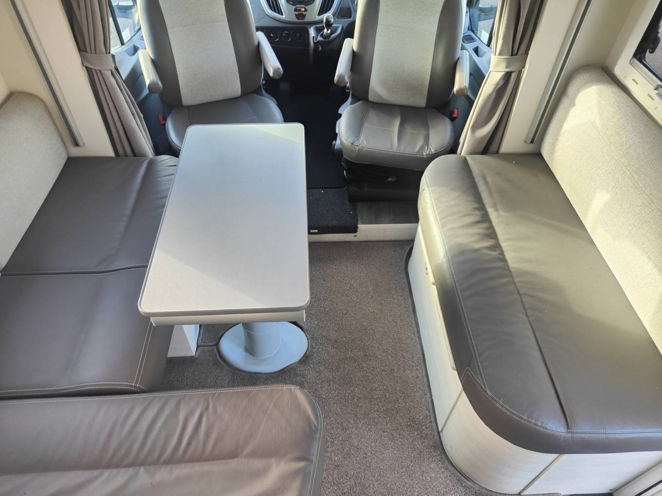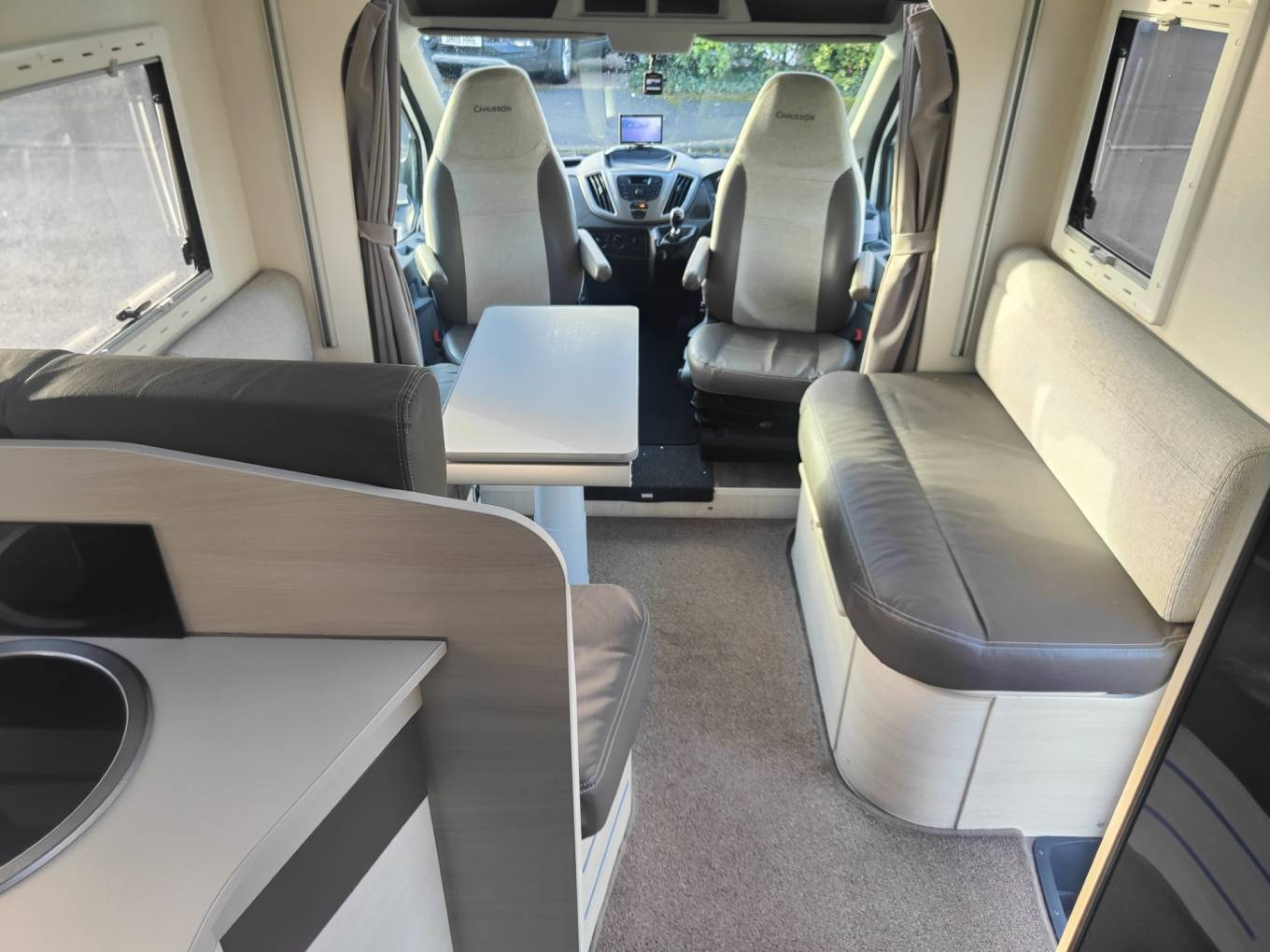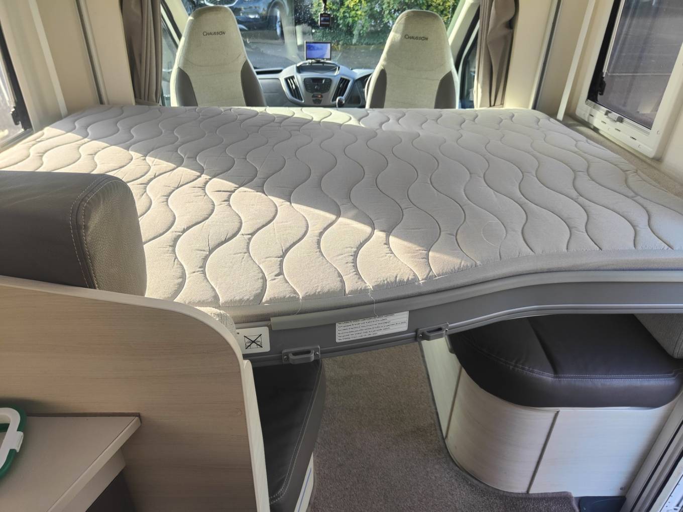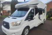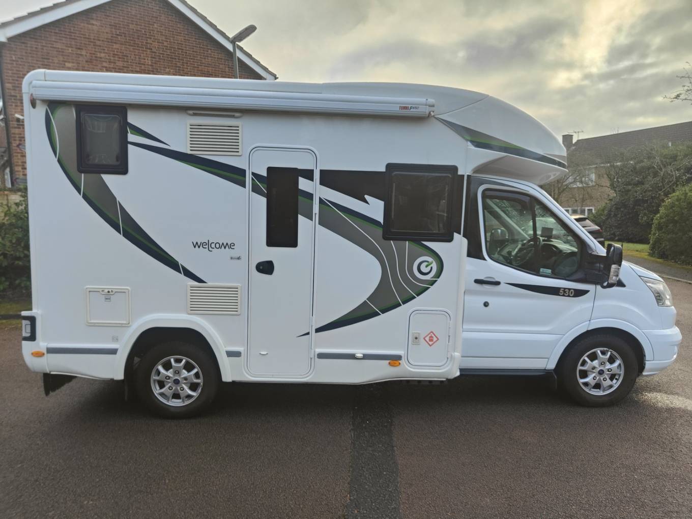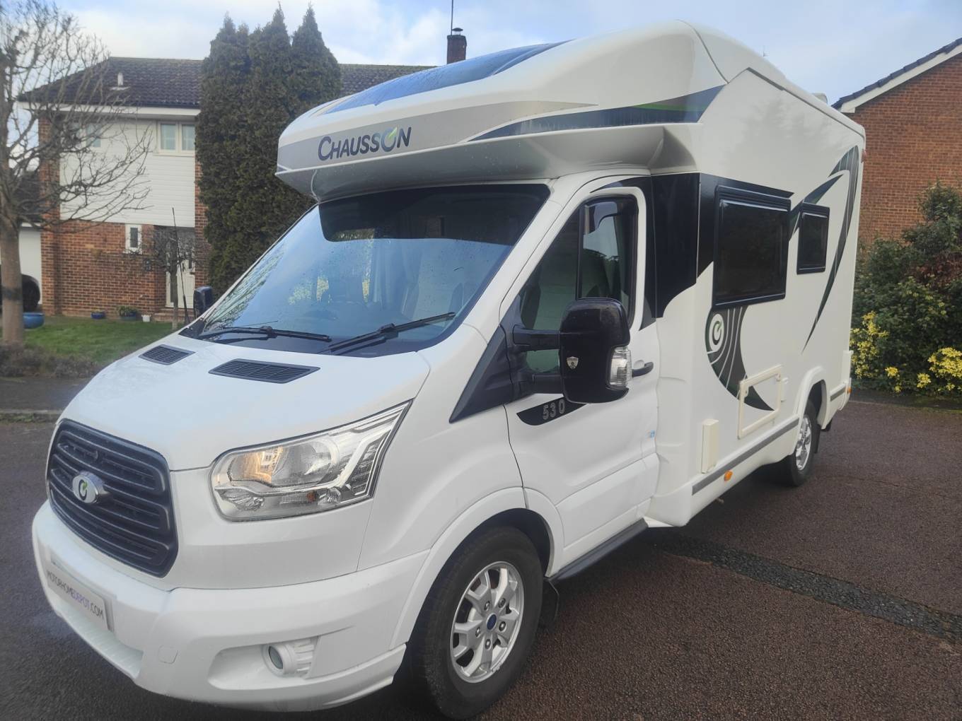 This is a nearly AS NEW example of Chaussons best selling Welcome 530 model. This sub 6.0 metre motorhome is plated at 3500kgs so can be driven by all. With a spacious front seating area that utilises the 2 rotating Captains seats, a very well equipped and spacious kitchen and a large rear bathroom with separate shower, this compact motorhome has it all with the icing on the cake being an electrically lowered double bed above the dinette. With 2 additional seatbelts, 2 double beds and the option of an inflatable awning, this will suit couples and families alike. In addition the the excellent standard spec, this example includes a 100 watt solar panel, rear suspension assist, tv and aerial, cycle rack, reverse camera, awning and a Tracker. Based on the excellent Ford Transit chassis, this 2.0 tdci derivative has the manual 6 speed gearbox, cruise control, cab aircon and 130 bhp. Last habitation inspection in December 2024 and last engine service including Wet belts july 2024. Outstanding condition. Based in Kent and more pictures available.