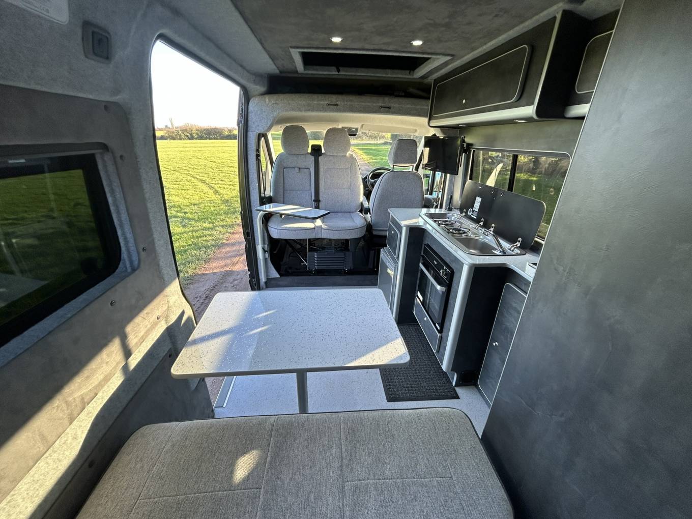 of the camper consists of a dual swivel passenger seat, a Vulcan Rock & Roll