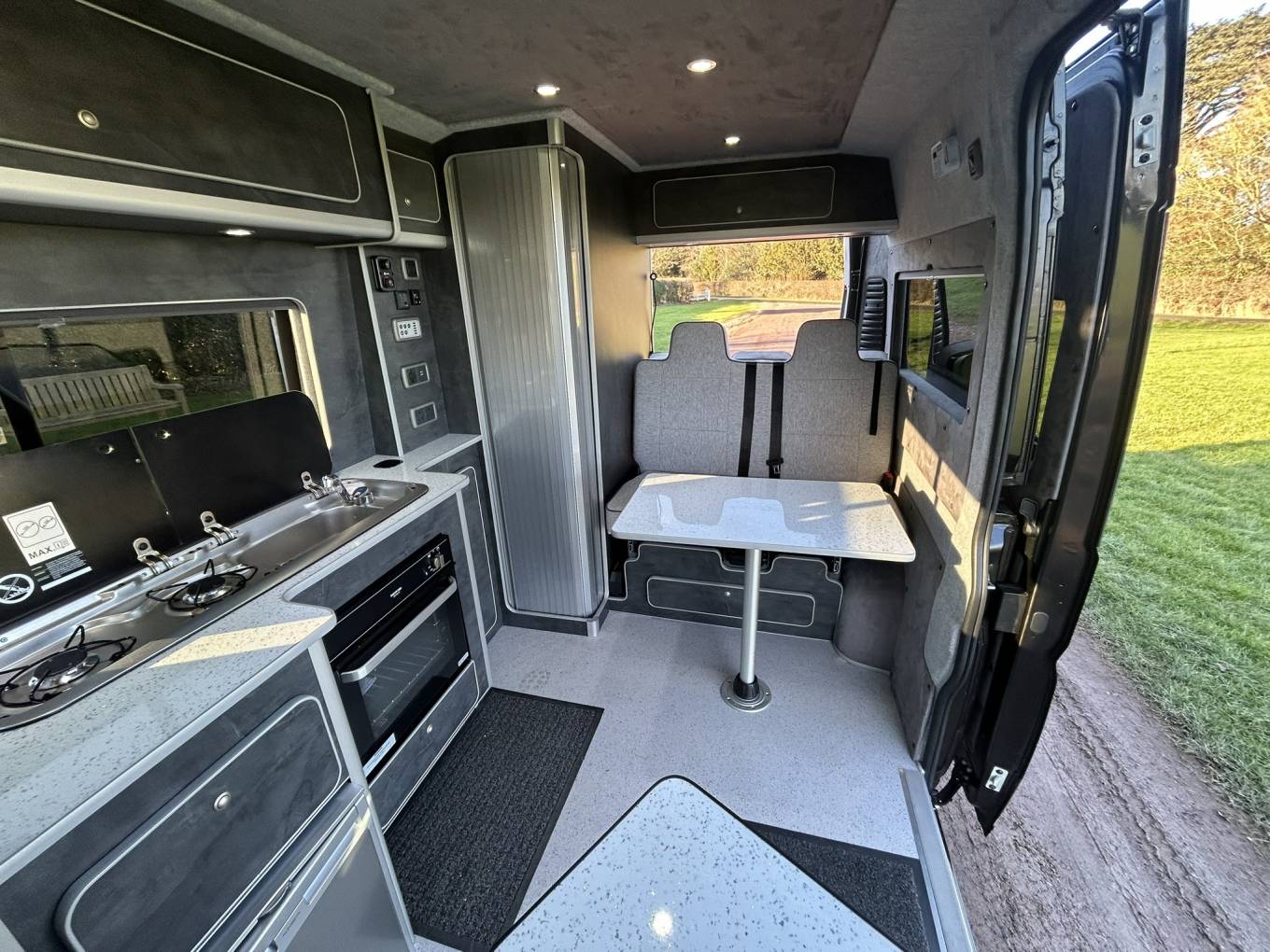 fridge freezer, 2 ring gas hob, combined oven and grill, Thetford cassette toilet, well positioned storage and