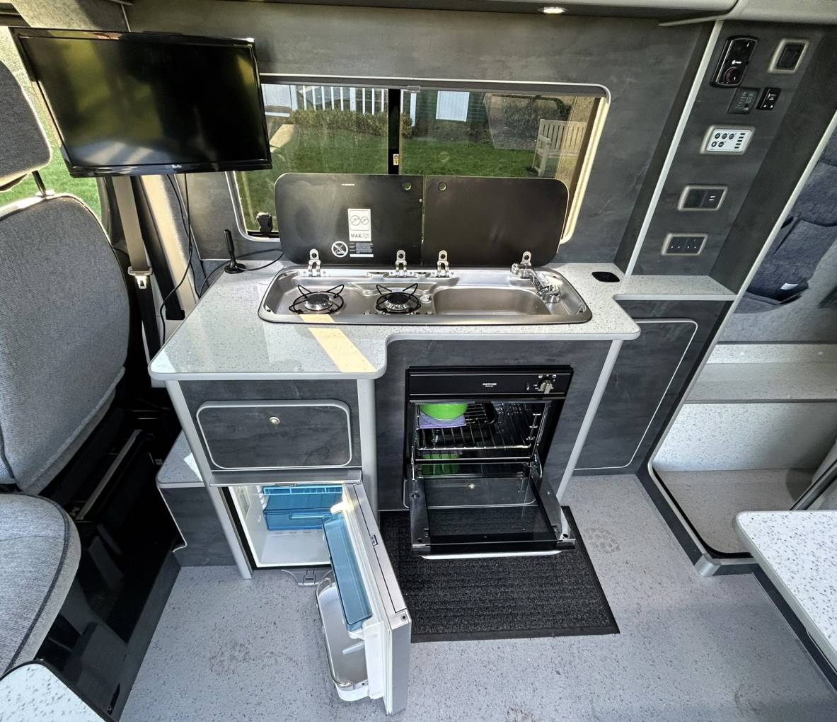 campervan also comes with a TV with a portable arial, Bluetooth connectivity, reversing