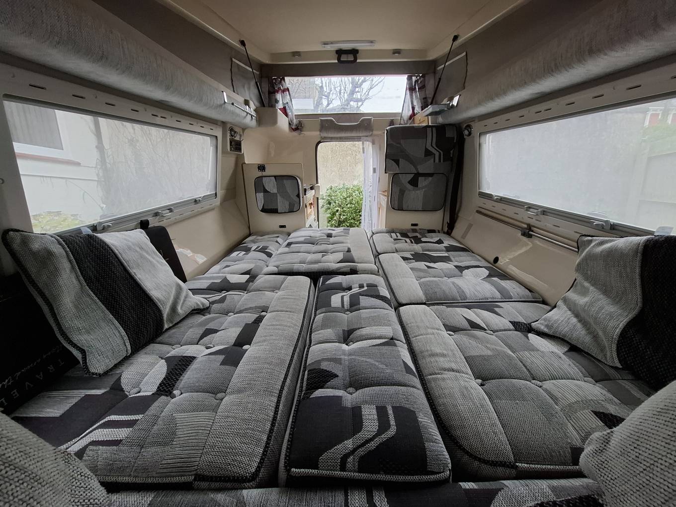 Excellent layout with sleeping places for 2 people in made up bed. There are 3 travelling seat belts. The popular lounge area can be used for dining, sleeping and relaxing.
