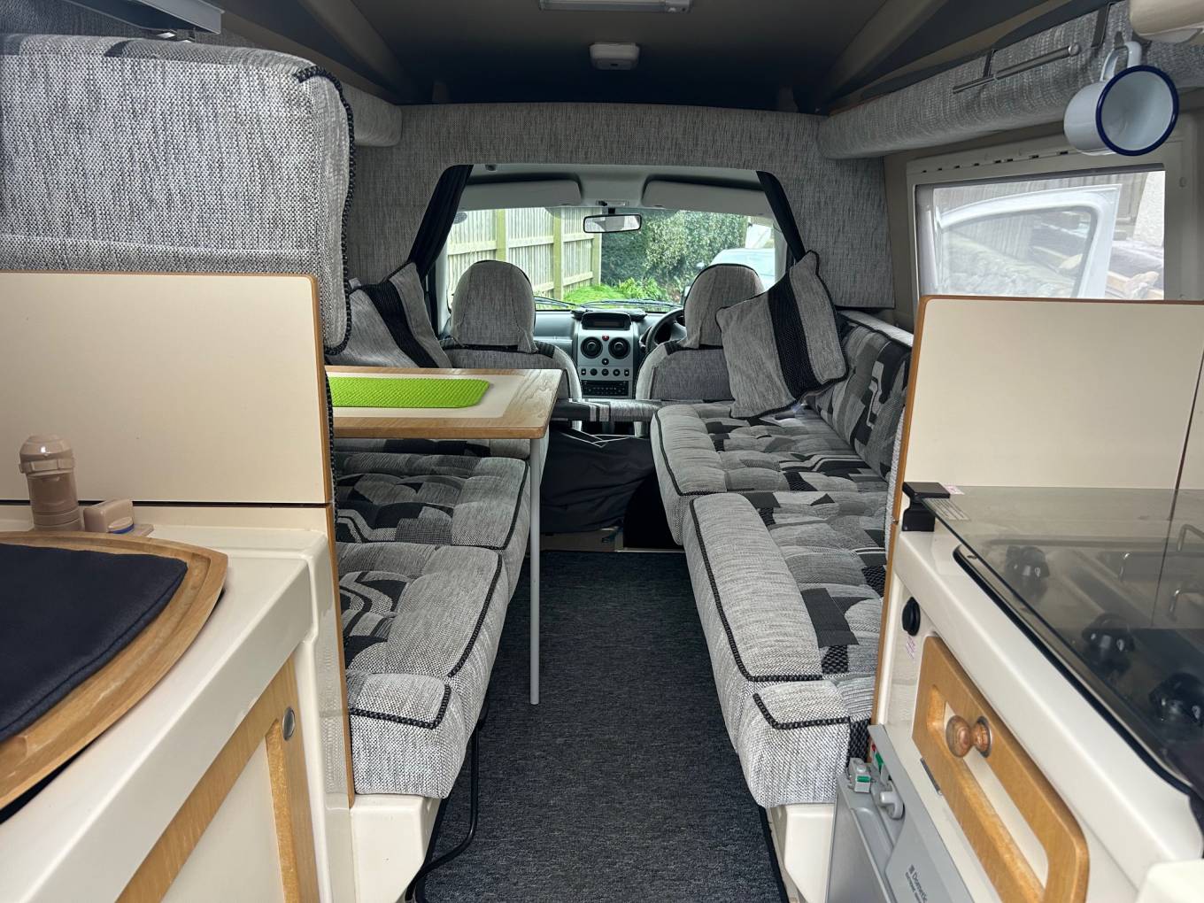 Based on the Citroen Berlingo chassis with a 1.6 Litre diesel engine and 5 speed manual transmission. The low roof pushes up to give you ample headroom.