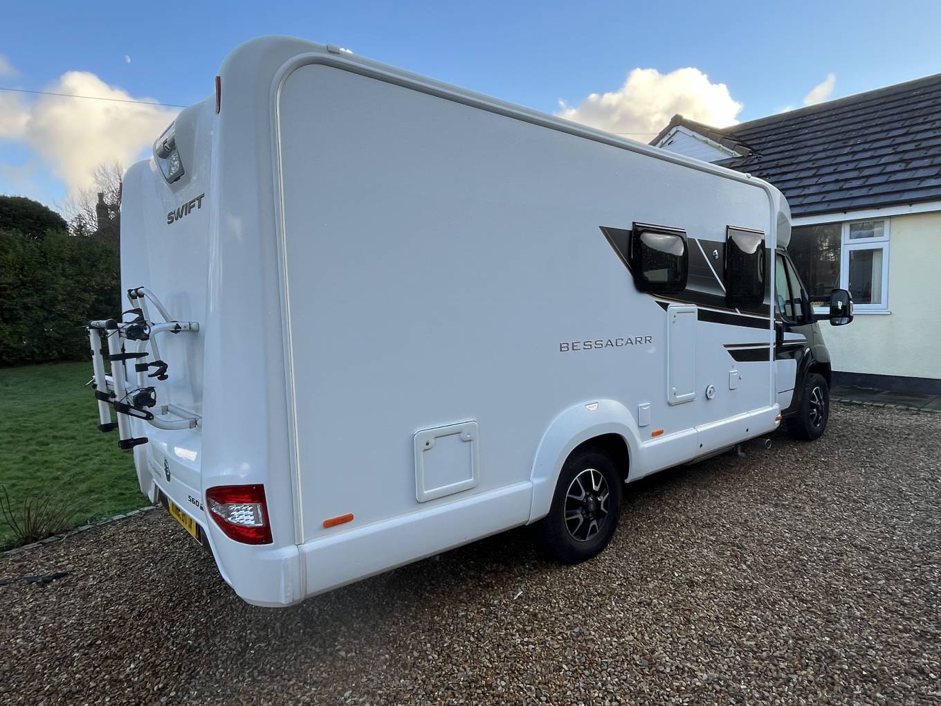 Swift Bessacarr 560, Luxury 4 Berth with Fixed Rear Bed. This motorhome is in lovely condition, serviced this year, MOT till Jan 2026 and 2 owners. It is built on the Fiat Ducato chassis with Automatic Gearbox and is just under 7 metres long. At the rear on the near side is the fixed double bed, under which is a large storage space, next to this is the bathroom with separate shower compartment. In the centre there is a well equipped kitchen, including built in microwave and at the front there is a large lounge area with 2 bench seats. It comes with Cab Air Con, Criuse Control, DAB Radio, Rear Camera System, Alloy Wheels, Alde Heating, TV, Canopy Awning, Bike Rack, Solar Panel and BBQ Point. It also comes with gas bottle, mains lead and 2 sets of keys. An excellent example, available for viewing by appointment in Blackpool, call for more photos, vidios and information.