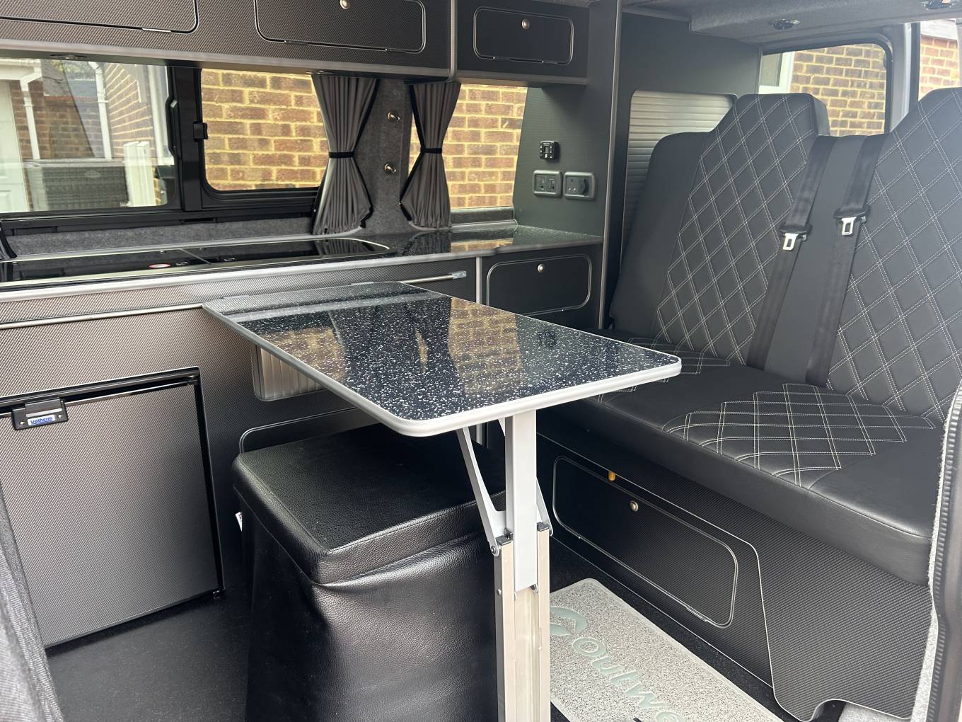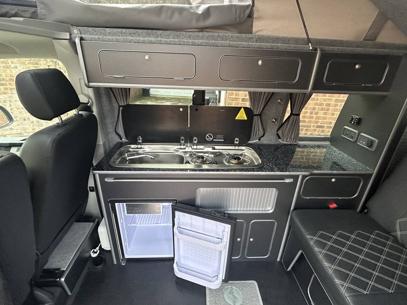 Cambridge Campers have covered this VW T6 S-Line which has a 2l engine and 5 speed manual gearbox. It comes with cab air conditioning, dab radio and reversing sensors. Internally the camper is in very good condition and has everything you could need to enjoy great adventures. The camper comes with a rock and roll bed, double front passenger seat that can be rotated around, removable table, 12v Fridge, cold water sink and gas hob with two gas burners.