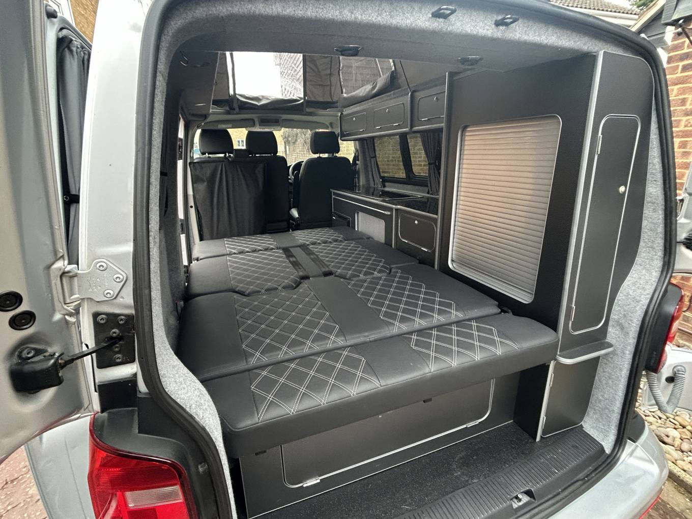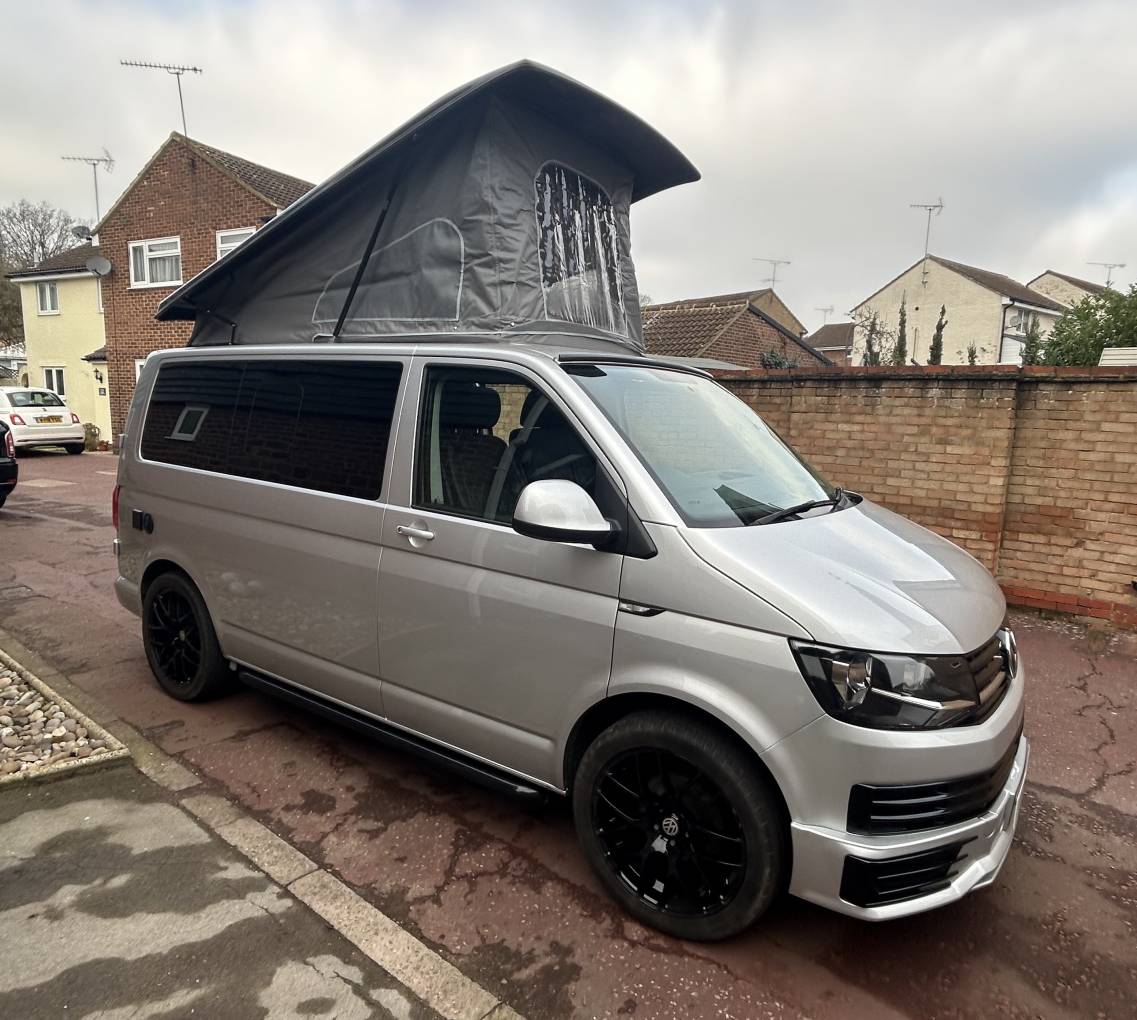 This is a lovely VW T6 camper that has been professionally converted to a very high standard by Cambridge Campers. It is presented in excellent condition and has been extremely well maintained by the current owners. It has a good service history including a new cambelt in 2023. The camper has a POP TOP roof and can sleep up to 4 people and has 5 travelling seat belts. The camper is ideal for around year round use and the fact it has a solar panel means it can be used on and off-grid, perfect for long trips around the UK, overseas, weekends away, festivals or even just a day trip to the coast.
