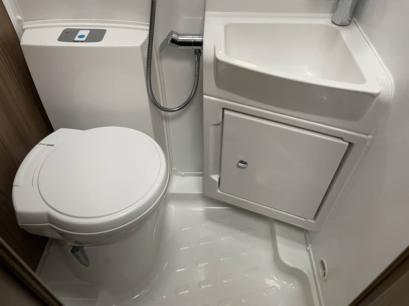 shower cubicle, wash basin, and a cassette toilet – designed for convenience