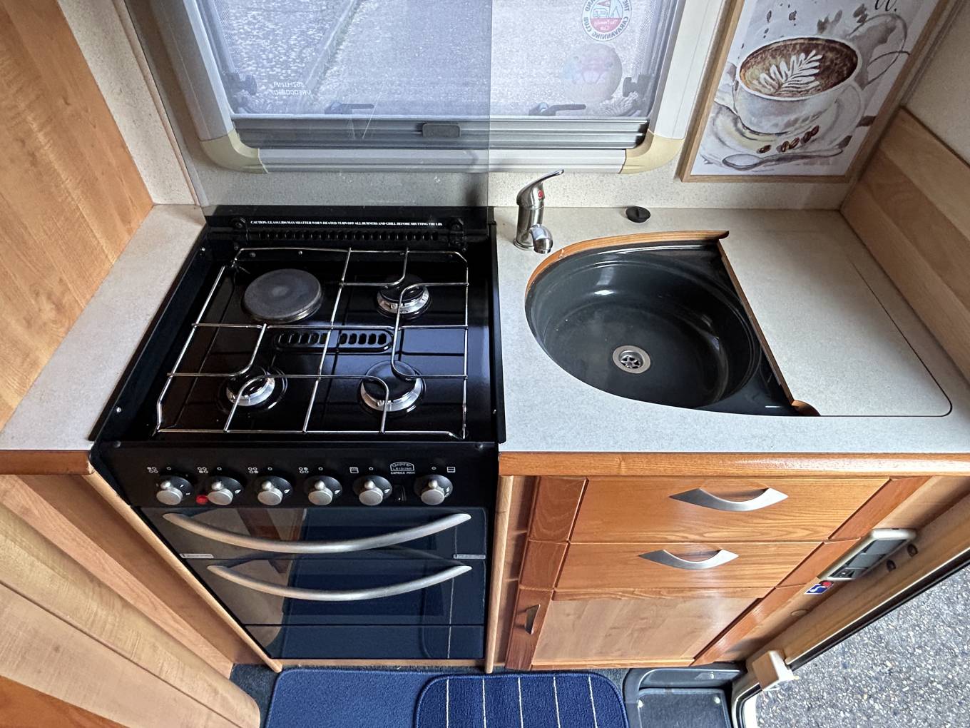 If you enjoy cooking then you will be delighted to know that this motorhome comes very well equipped. As well as an oven and grill there is a dual-fuel hob so you have no excuses for not conjuring up gastronomic meals for yourselves.