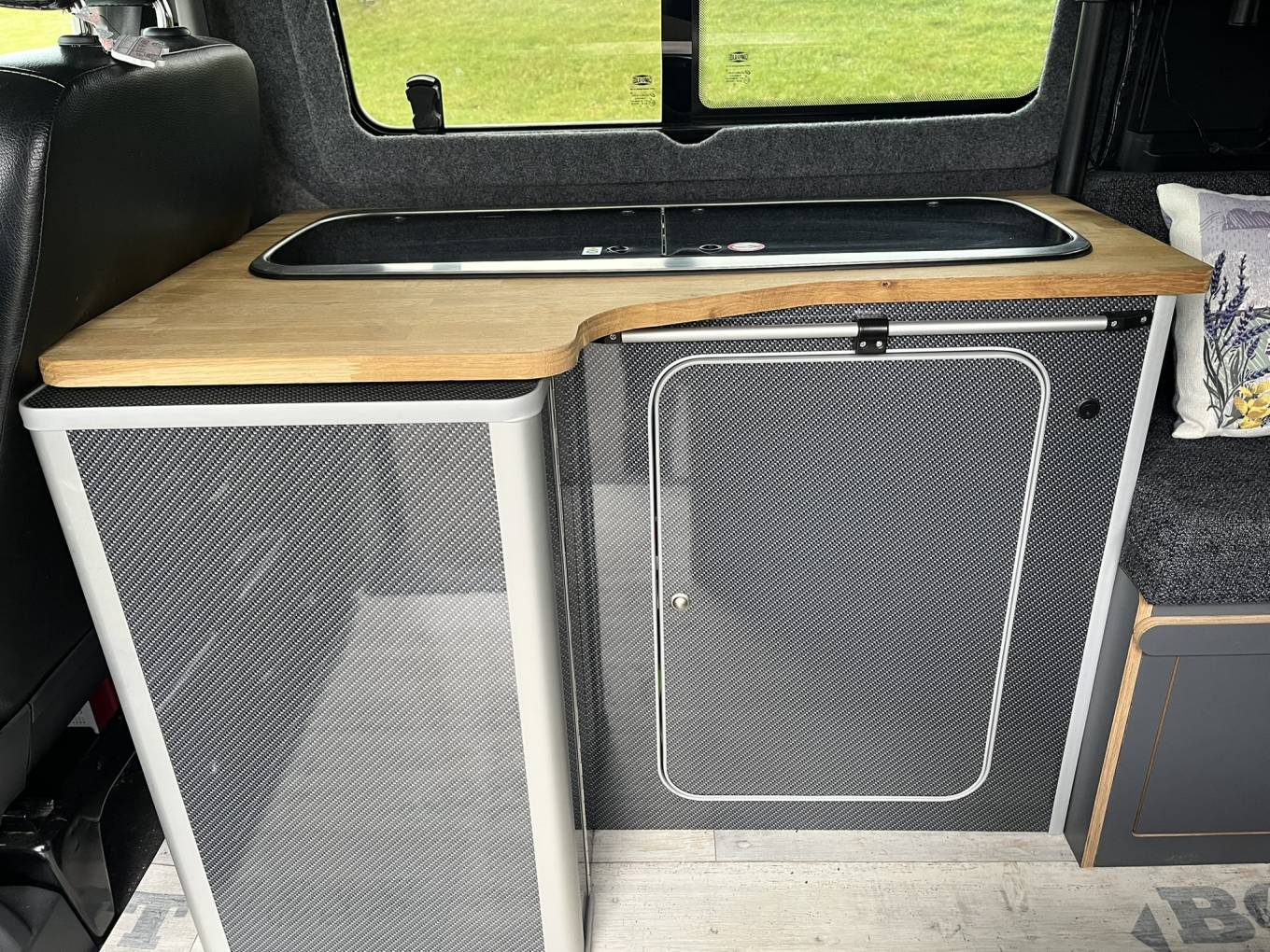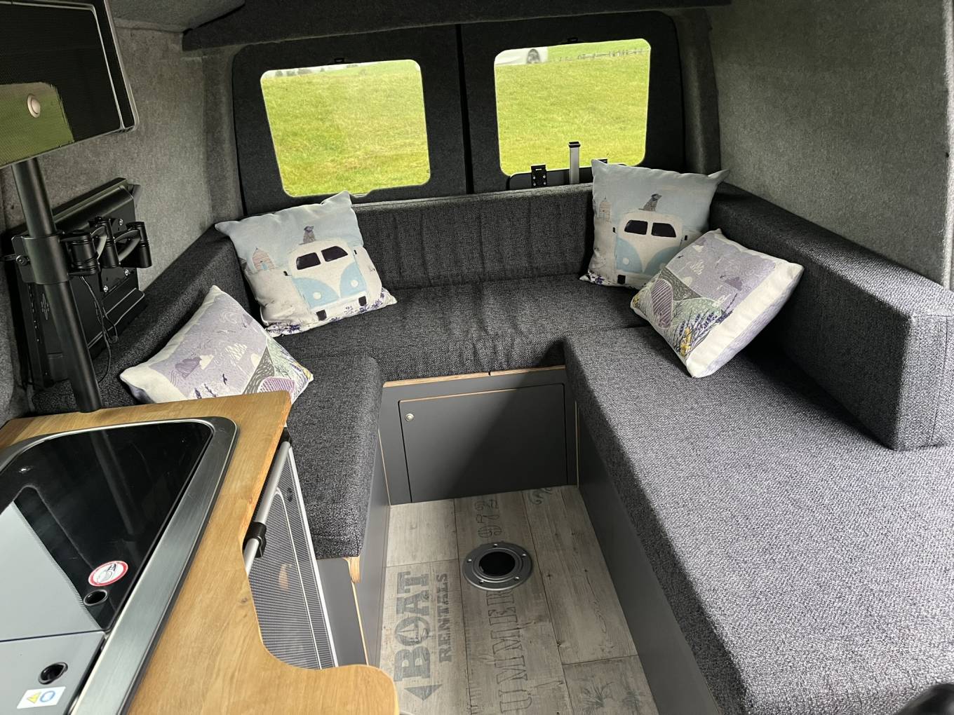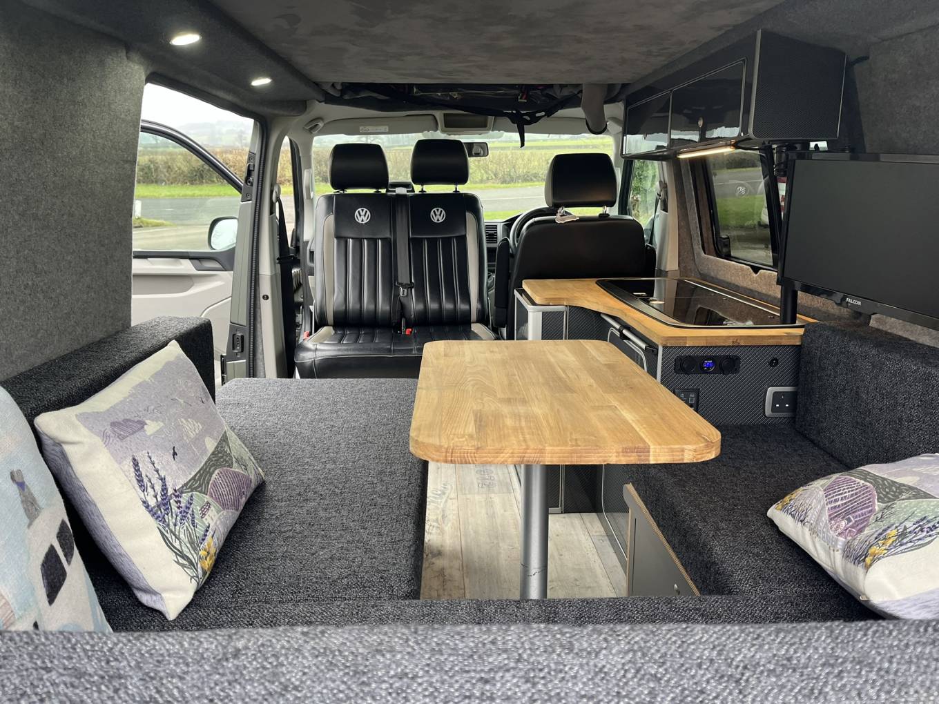 Meet 'Bob' -a very smart looking and carefully thought out VW Transporter Camper Conversion, with fabulous rear U-Shaped lounge seating, making up to a full width king-sized bed.