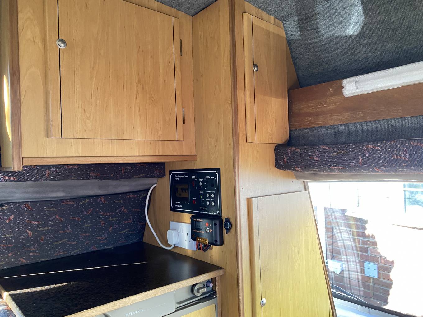 is 2 berth. It has a sink, gas burner hob, gas grill, solar panel, 2 leisure