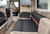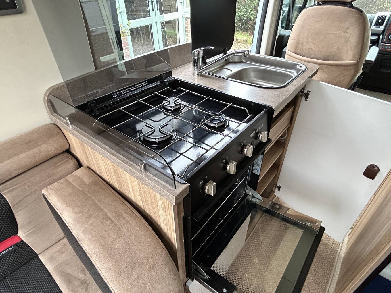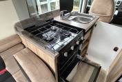For a campervan the kitchen is very impressively equipped so if you enjoy cooking you're well catered for. As well as an oven and grill you have the added bonus of a microwave. Some campervans feature a small 12 volt fridge but not this one, it has a good size 3 way fridge that runs on electric, gas or the leisure battery. There is also a surprisingly generous amount of locker and cupboard space for your cookware and crockery.