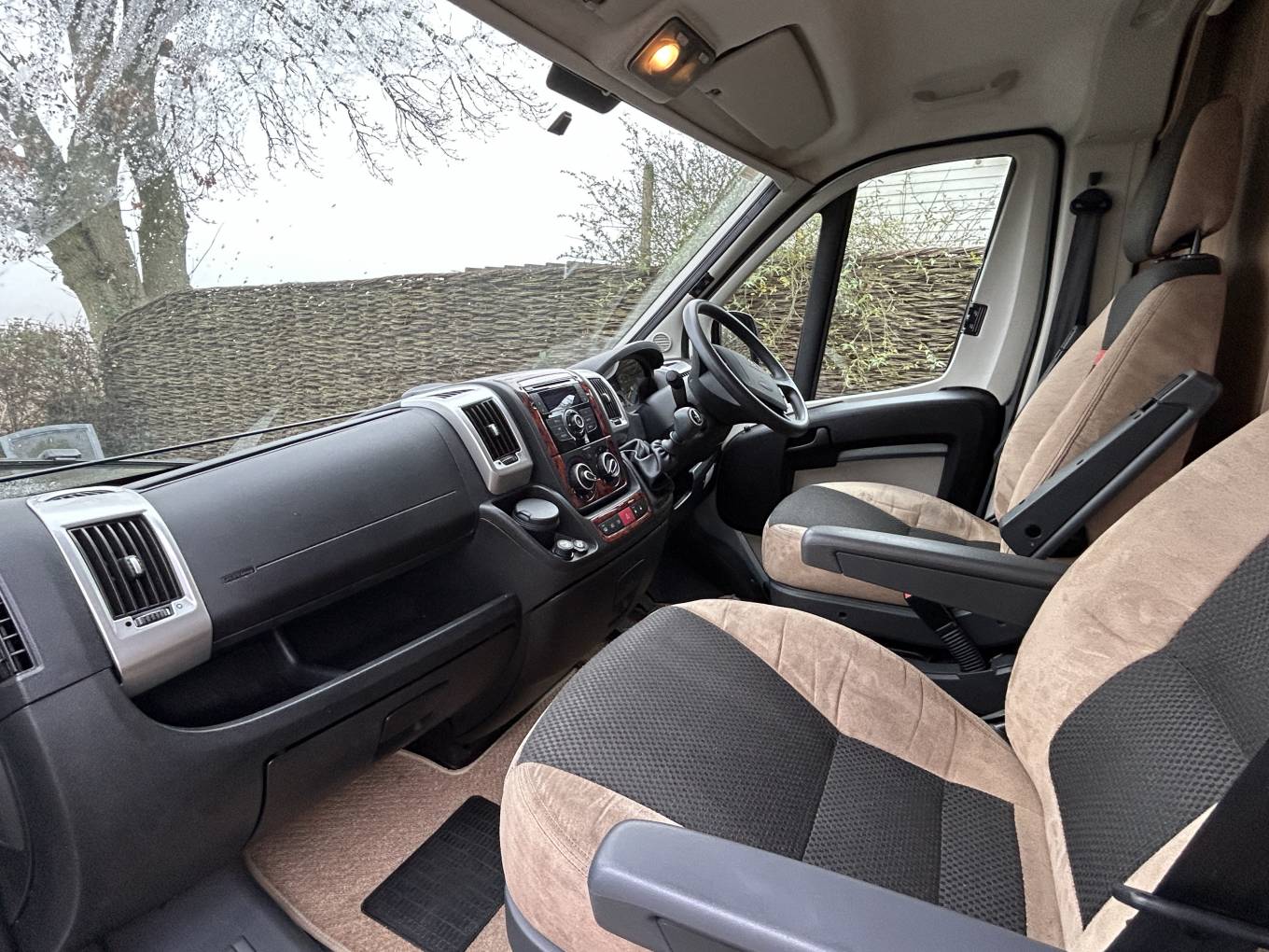 It is based on the superb Peugeot Boxer chassis and has the powerful but economical 2.2 litre engine which will climb hills and mountains with ease. Having covered just 30,420 miles this little beauty has only just begun her adventures. In the cab there is air conditioning, cruise control, electric windows and mirrors, a radio cd player and both front seats swivel.