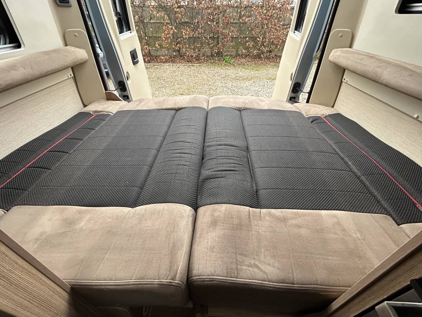 At the rear is the lounge featuring 2 side facing sofas finished in a stylish fabric. At bedtime the sofas quickly pull together to make up the bed which measures 74 x 50 inches. At the rear there is a TV so at the end of a busy day you can sprawl out and catch up on your favourite shows or crack open a bottle and relax with a good book. The rear double doors open and there is also a side sliding door so in summer time you can get plenty of ventilation into the campervan. In winter time the van can be heated using electric or gas.