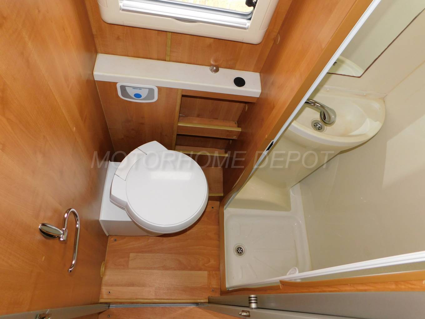 washbasin with pull-out mixer tap, Thetford cassette swivelling toilet /