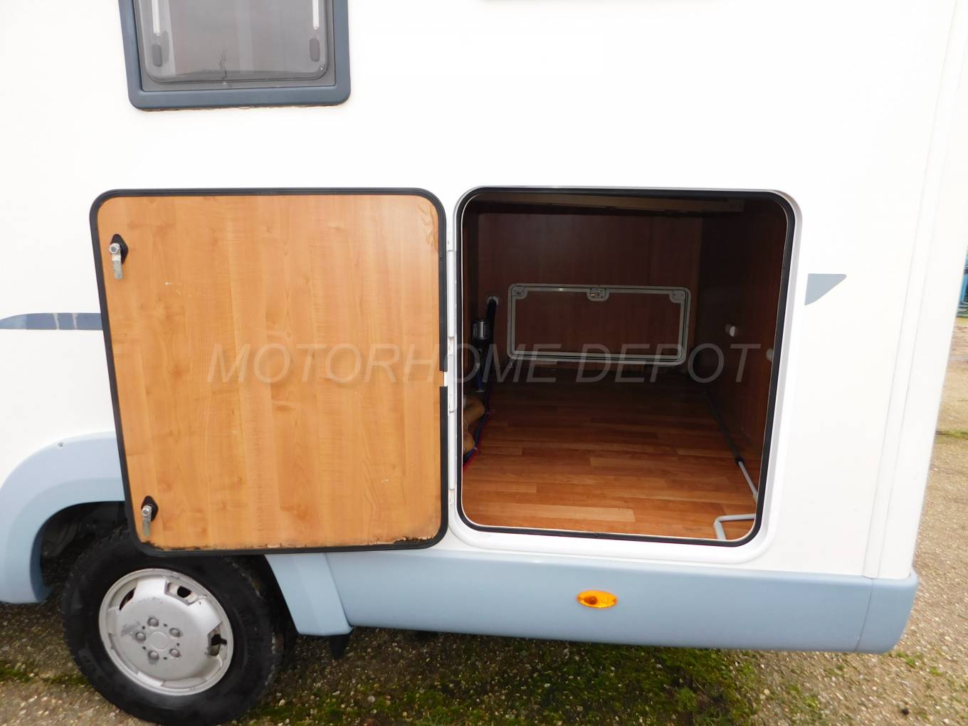 sun canopy / Fiamma bike rack, tv aerial, gas locker, storage locker.