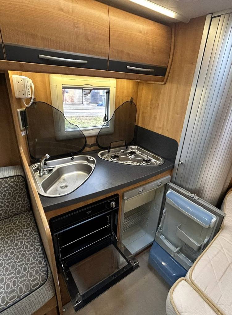 rear bedroom. This consists of a 3-burner hob, combined oven and grill, sink,
