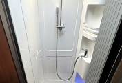 shower, washroom and bedroom from the front of the motorhome, providing a great