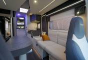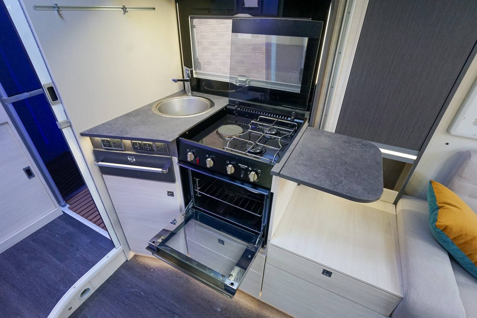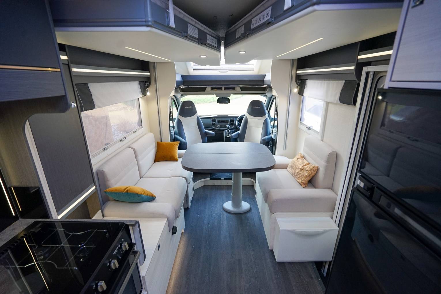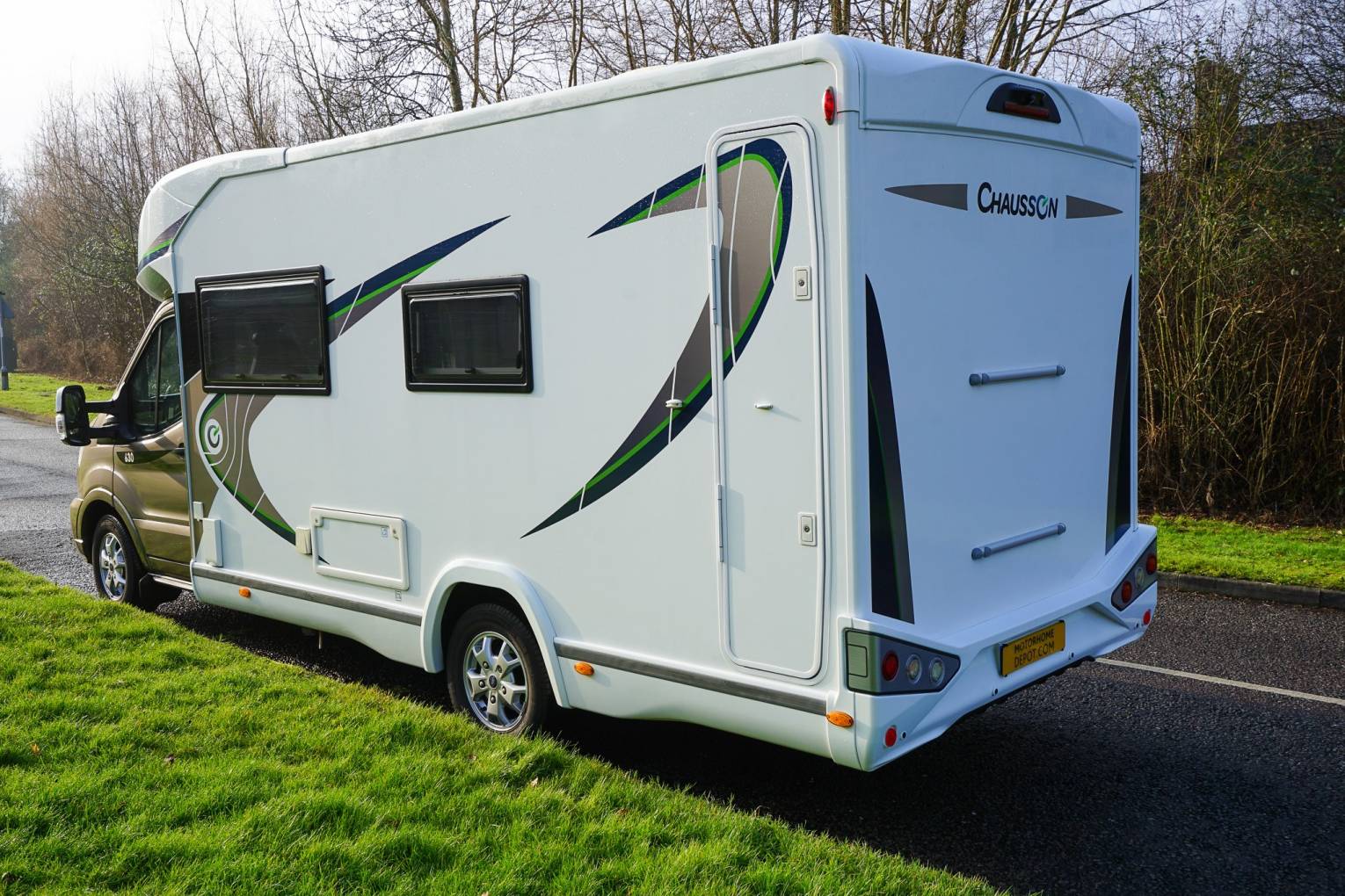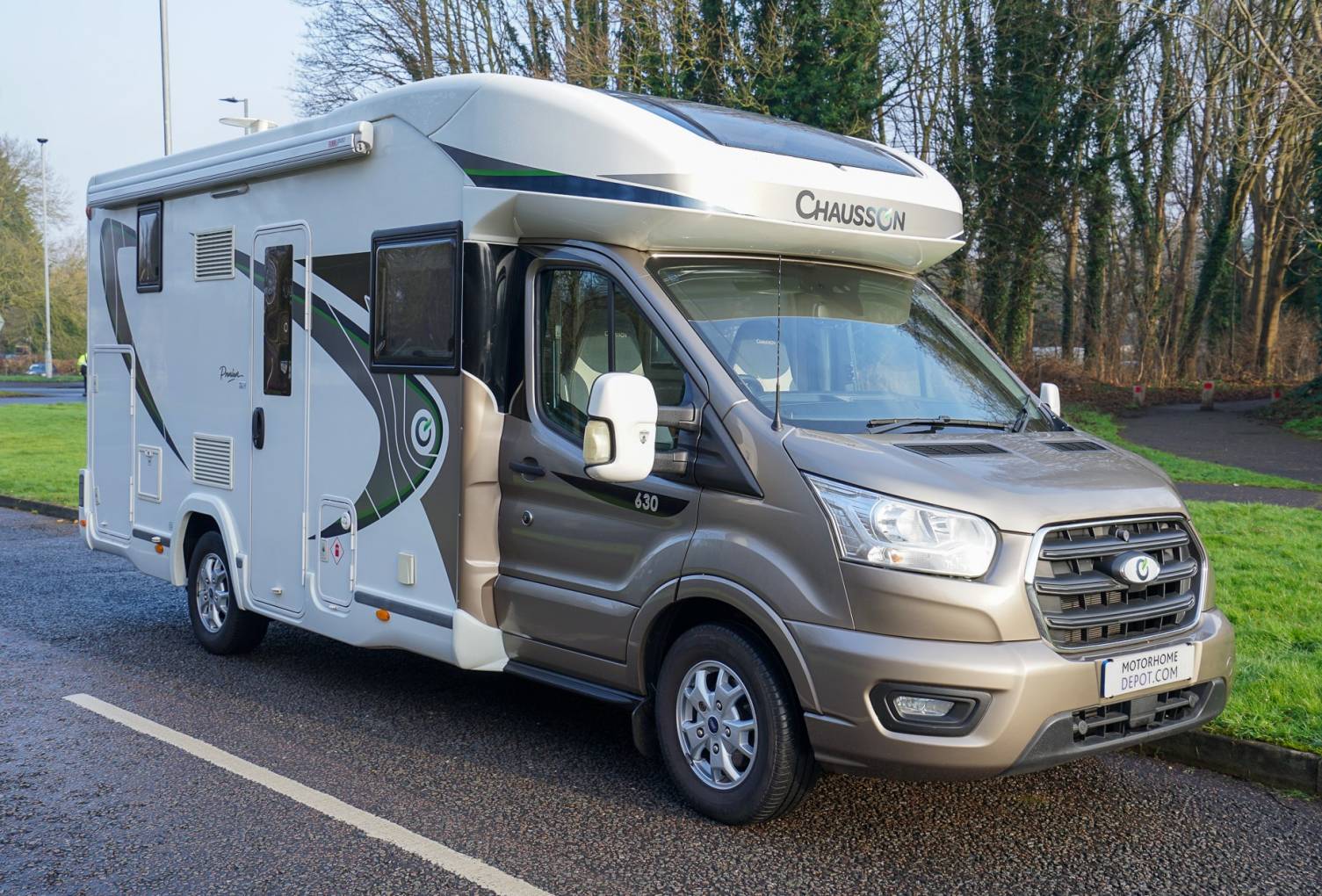 2020 CHAUSSON WELCOME 630 TITANIUM PREMIUM. Automatic. Twin Electric Drop Down Beds, giving you a very Generous living area with spacious end washroom. 3 berth and 3 travelling belts. Low profile motorhome with the much sort after electric drop-down single beds over the lounge area. At sub 7 metres in length it is based on the hugely popular Ford Transit chassis with the 170 bhp upgrade 2.0 diesel engine (Euro 6 & ULEZ Compliant). 6 speed AUTOMATIC gearbox. Features Include: Gas Low Refillable Gas bottles, Alloys Wheels, 24” TV, Ghost Immobilizer and Wi-Fi 5G.