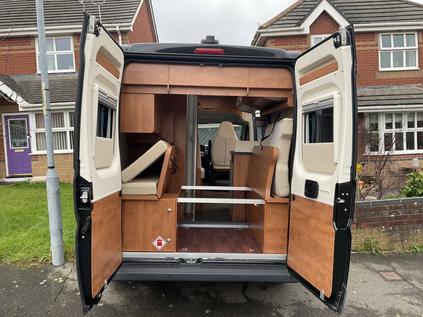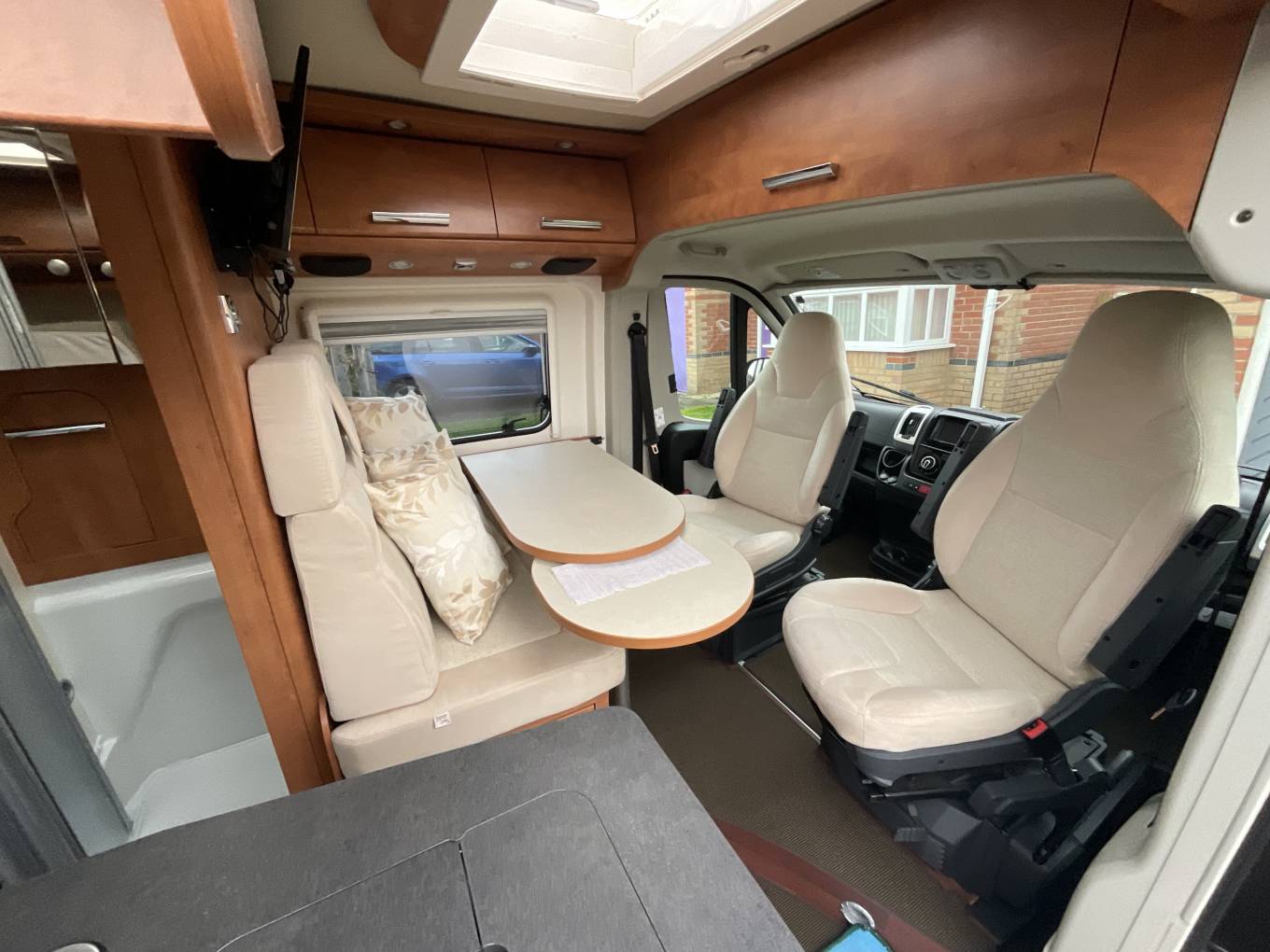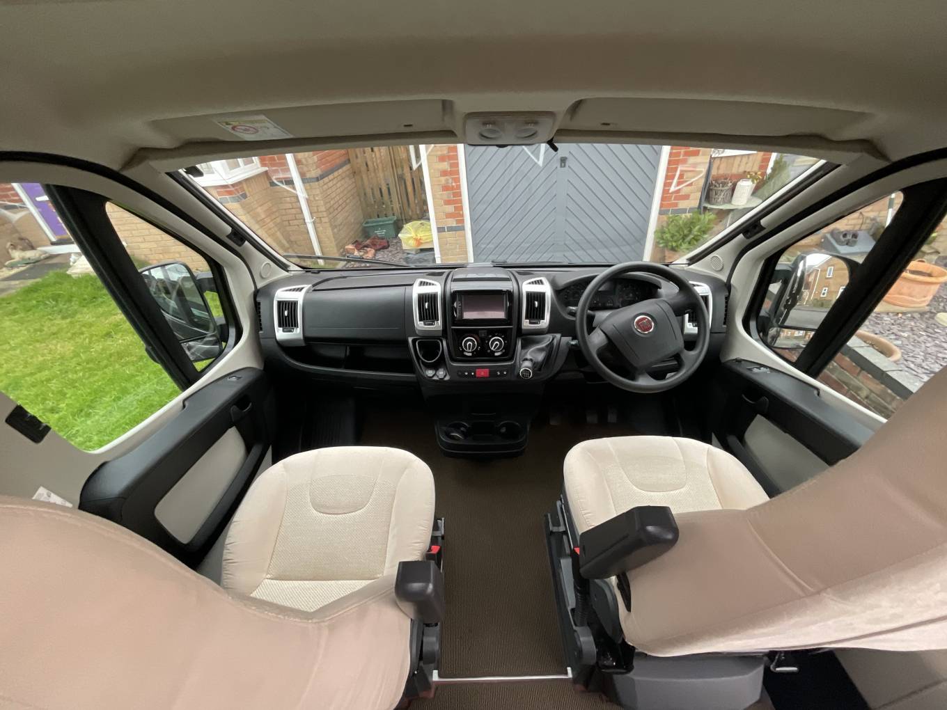 This Carthago Malibu 540, 2 berth with 4 belted seats has superb build quality. First registered August 2019 with only 11389 miles. The layout consists of rear fixed transverse bed, side kitchen and washroom. The lounge area is a great layout with swivelling captain seats. This really makes it a very nice dining area and really good for socialising. The mid kitchen has a sink, gas hob, 3-way fridge freezer, and good worktop space. Washroom has used the space really well and is a very clever design, with a drop down wash basin, the toilet slides to one side giving a good size shower room. Rear fixed transverse bed is a good size with good storage all through the camper. Built on Fiat Ducato chassis, with a manual 6 speed gearbox, 2.3cc engine, 5.4m long this camper is very a very easy drive and a pleasure to drive. Camper also comes with cab air Conditioning, Cassette Toilet, 2 rear 3 point seatbelts, Power steering, Central locking, Remis front blinds, Bulit in wifi, sim card will be required.