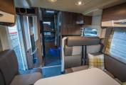 When its time to hit the hay, the electronic Drop-Down bed has ample space for two adults, whilst the centre dinette area turns into a spacious single and the rear bunk beds are perfect sizes for any two members of the family. The real beauty of this vehicle lies in its versatility though. Whilst having the space to fit a full family of 5, both seated and sleeping, you can take one of the beds away to reveal a large sports garage, big enough for bicycles, sports equipment or even a small Ebike. This is facilitated as the bottom bunk bed retracts and closes away to expand the garage area. This feature combined with a large vertical garage locker door, means you don't have to compromise when picking a motorhome and can change your configuration whenever you like. A unique and inexpendable feature synonymous with the Chausson Family of Motorhomes.