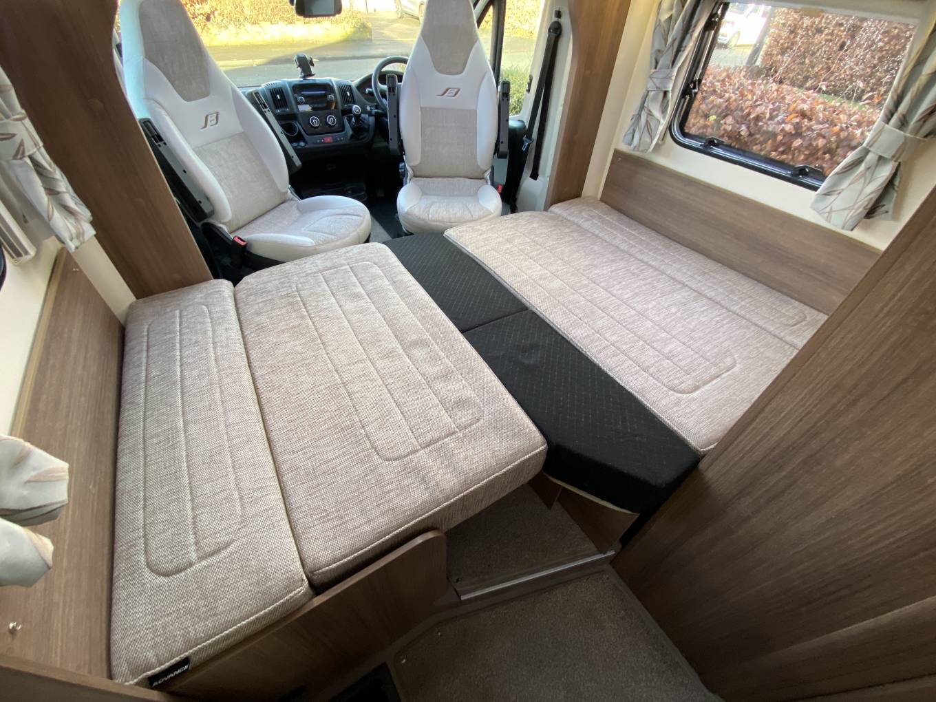 comfort. The front living area includes bench seats with swivelling cab seats,
