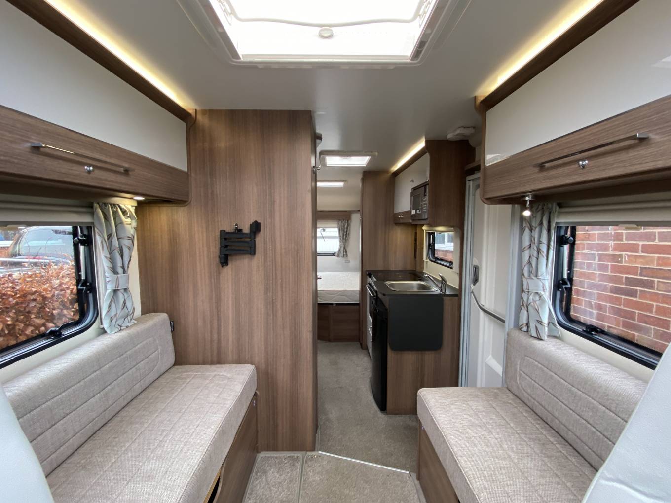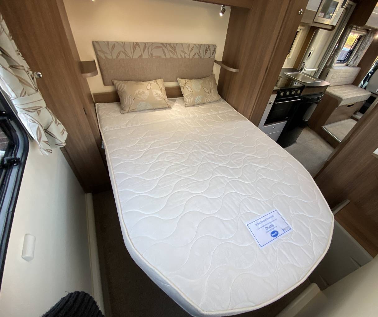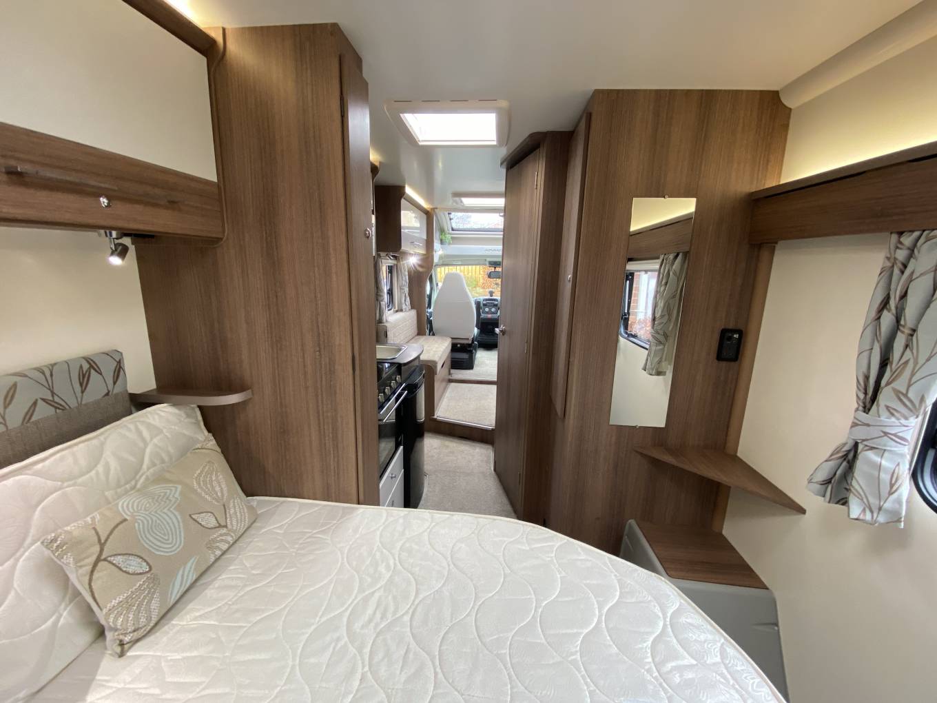 and a mirror/vanity shelves. The rear bedroom has a transverse island bed and lots