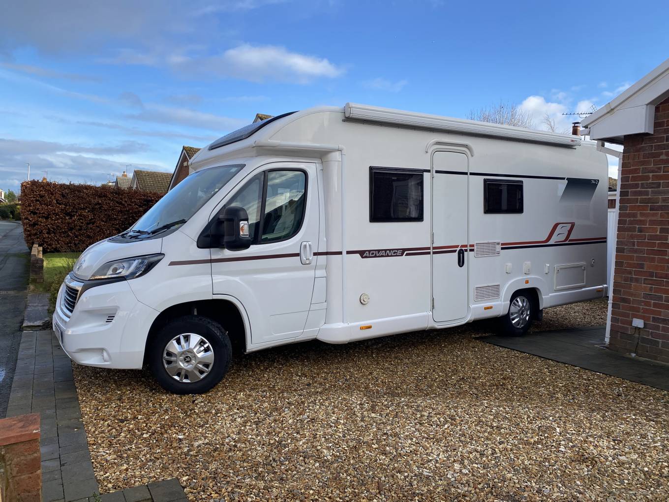 This 2018, 2 owner motorhome also has a bike rack, outside gas point, 2 gas bottles, 2 tv brackets, wind out awning, solar panel, ramps, external aerial point, external 240v socket, dual view reverse camera, steering lock and a wheel lock. This really is a very nice motorhome and is a great example of the Bailey Advance 74-2.