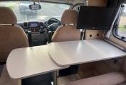 Sleeping is via the Rear Fixed French Double Bed - this bed raises to provide Large Storage Space. An additional Double can be made from the Dinette Area