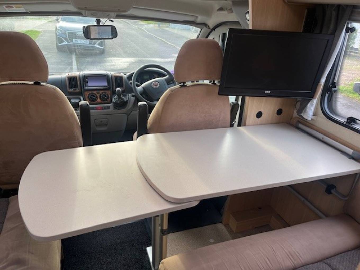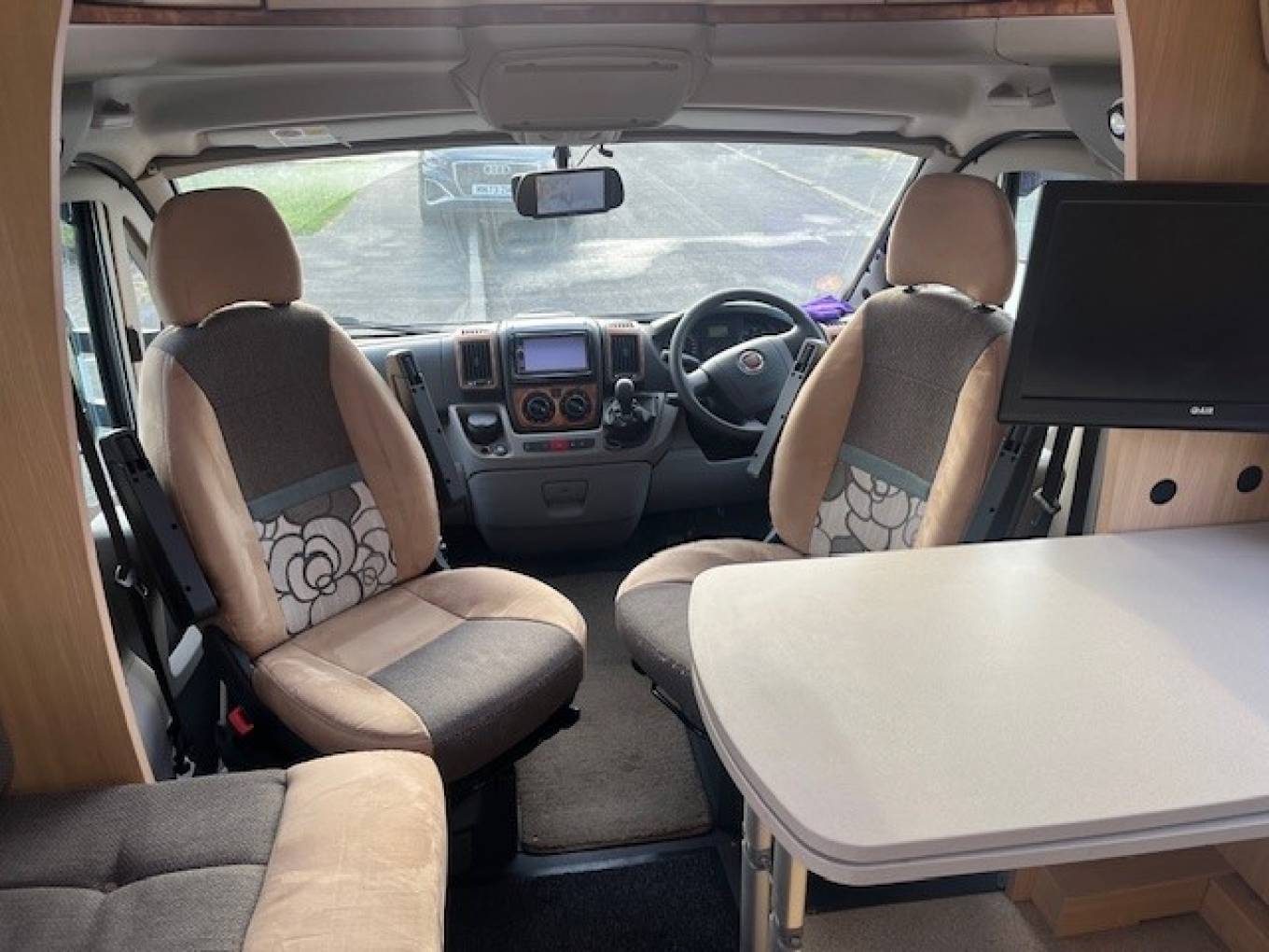 Great Spec including, 4 x Travelling Seat Belts, Solar Panel, Bike Rack, Tow Bar, Cab Air Con, Swivel Cab Seats, Sunroof, Electric Windows and Mirrors, Reversing Camera, Alarm, Truma Heating and Hot Water System, Blinds and Flyscreens Throughout, Front Cab Blinds, Wind Out Canopy, Aerial and 2 x TVs, Gas Bottle, Sat Nav / Entertainment System, Cruise Control, Manuals, Wing Mirror Protectors, Full Set Of Carpets, More than Ample Storage Throughout