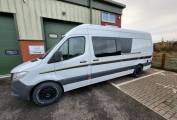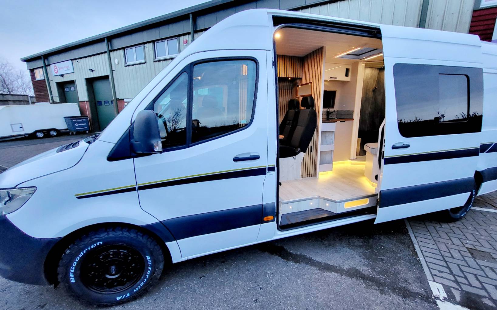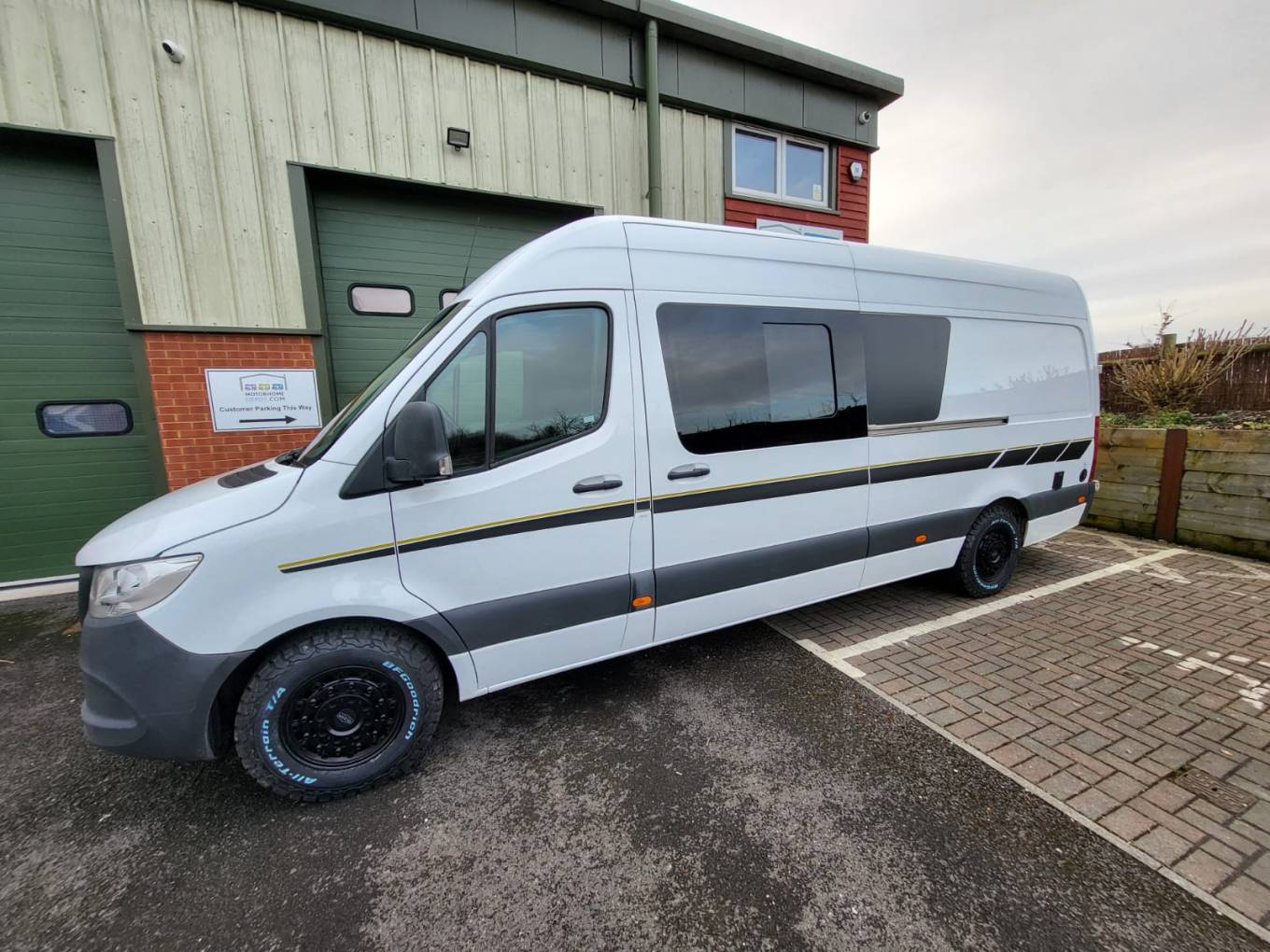 Motorhome Depot Dorchester are delighted to market and sell this VERY cool and unusual XLWB Mercedes Sprinter camper originally converted by Vanny campers and subtly improved by Motorhome Depot to make it a truly irresistible family camper with seating and belts for 5 and sleeping for 3-4 people depending on their size (large single)