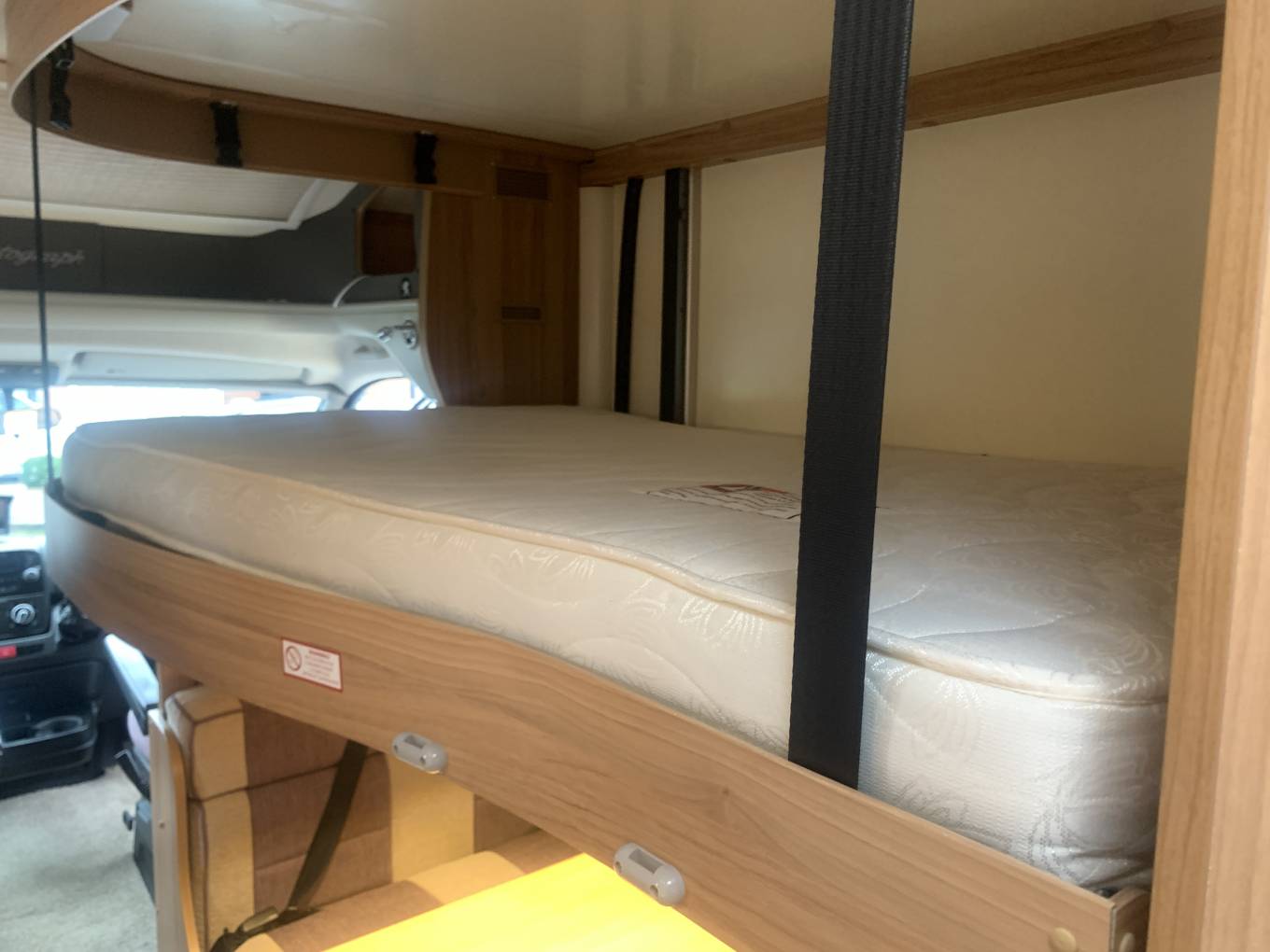 Bailey’s impressive 6 berth motorhome with longitudinal electric drop-down bed, above the pullman style dinette which also makes a further double allowing for free access around habitation area enhanced by the extra wide body.