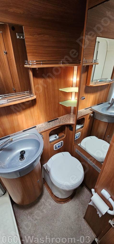 - Large Washroom with separate shower situated across the whole width at the back of the motorhome.