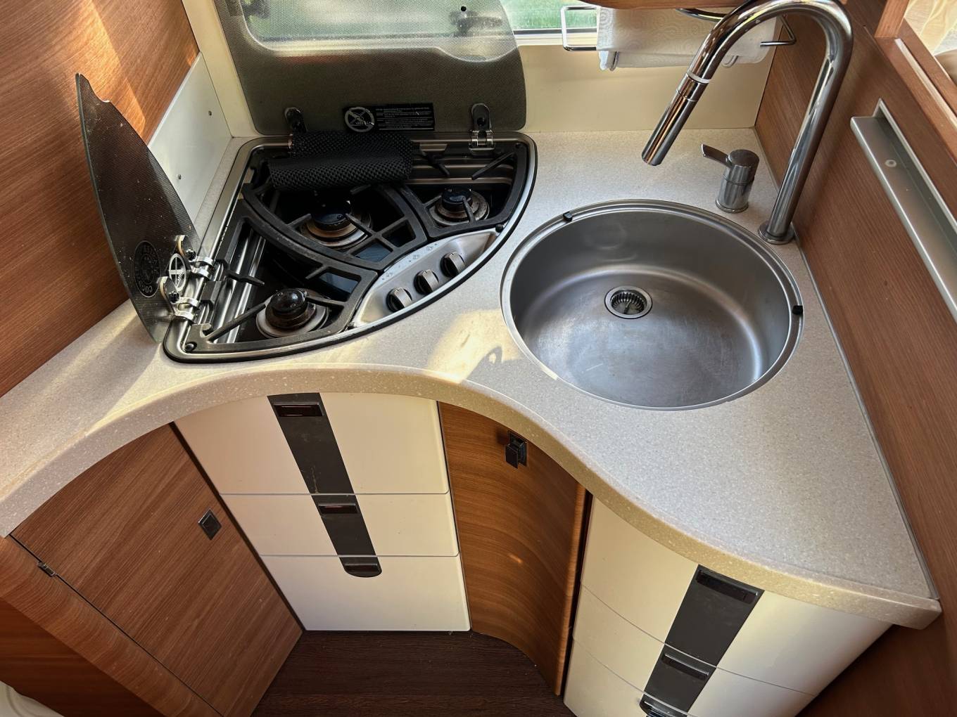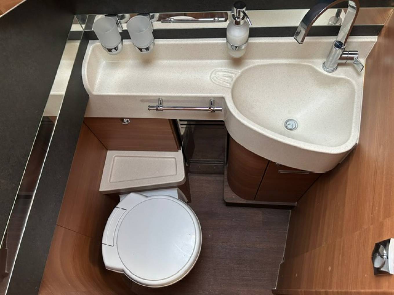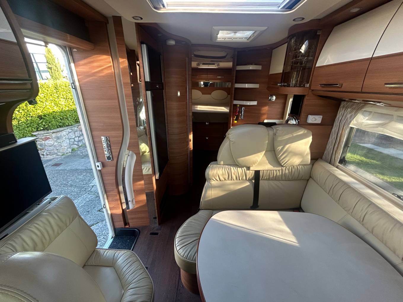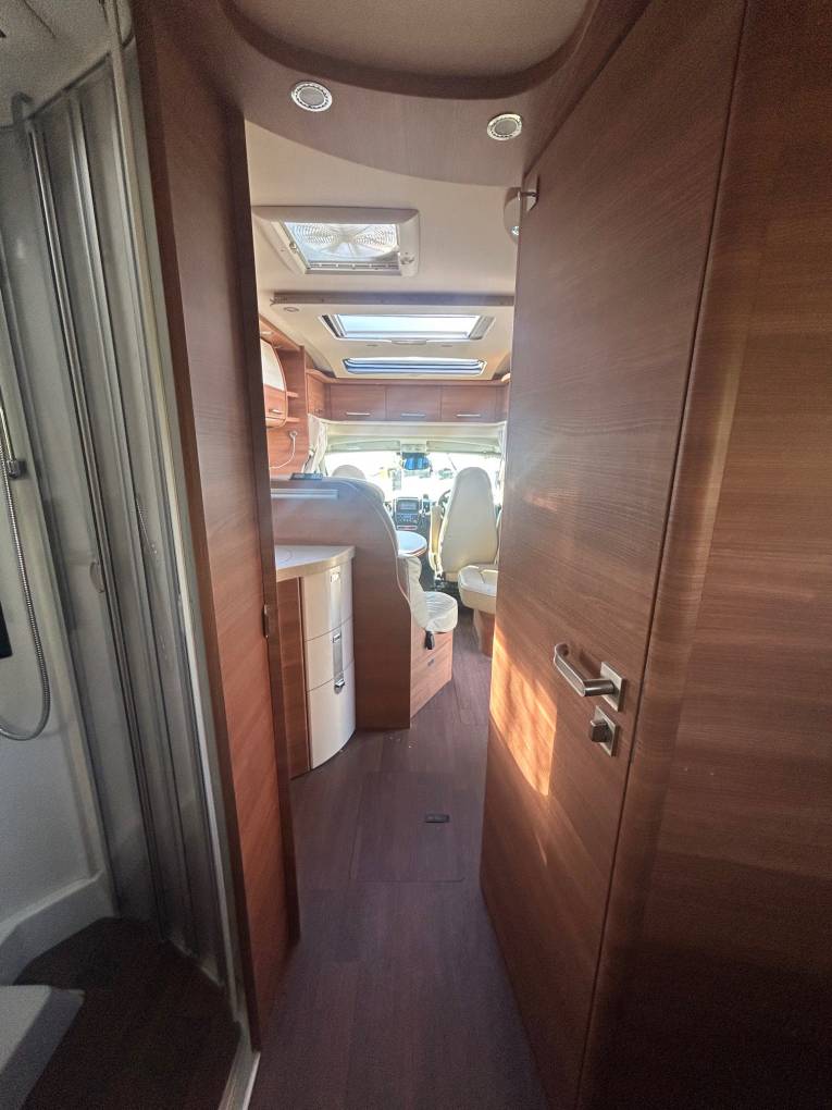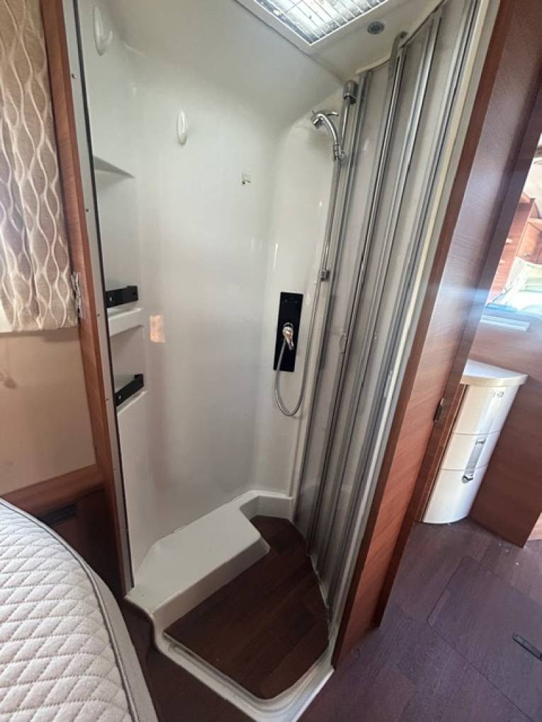 A beautiful example of a Carthago with delightful furniture layout and design with the doors and cupboards and locker doors from craftmanship of the first order. Indeed the Shower has never been used !!!