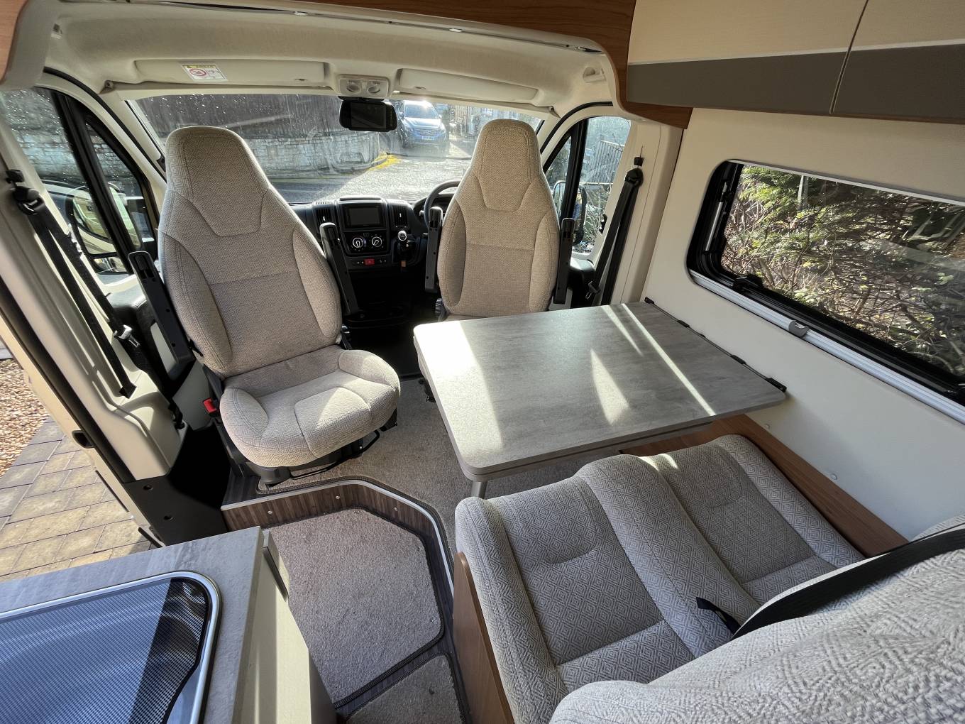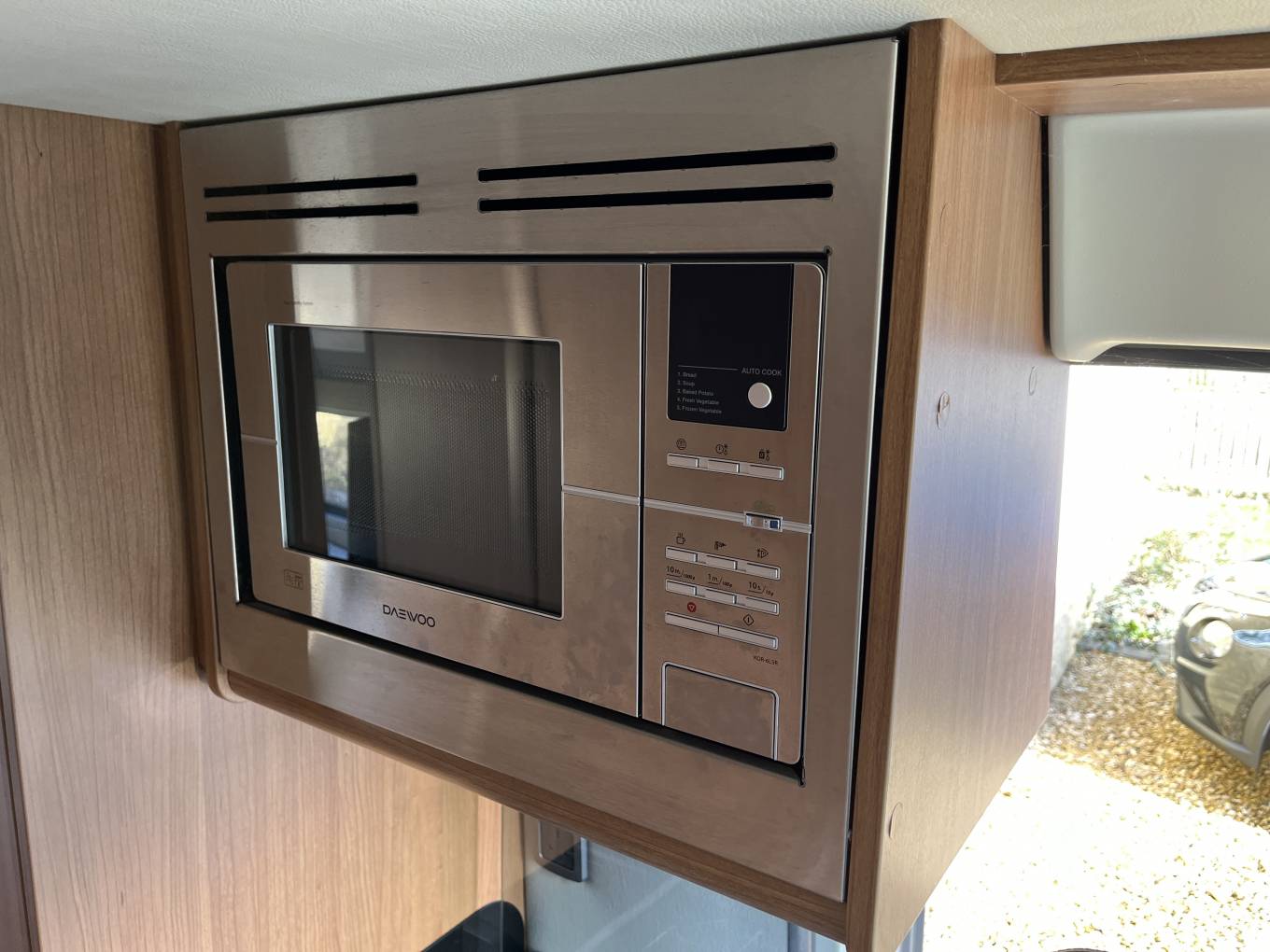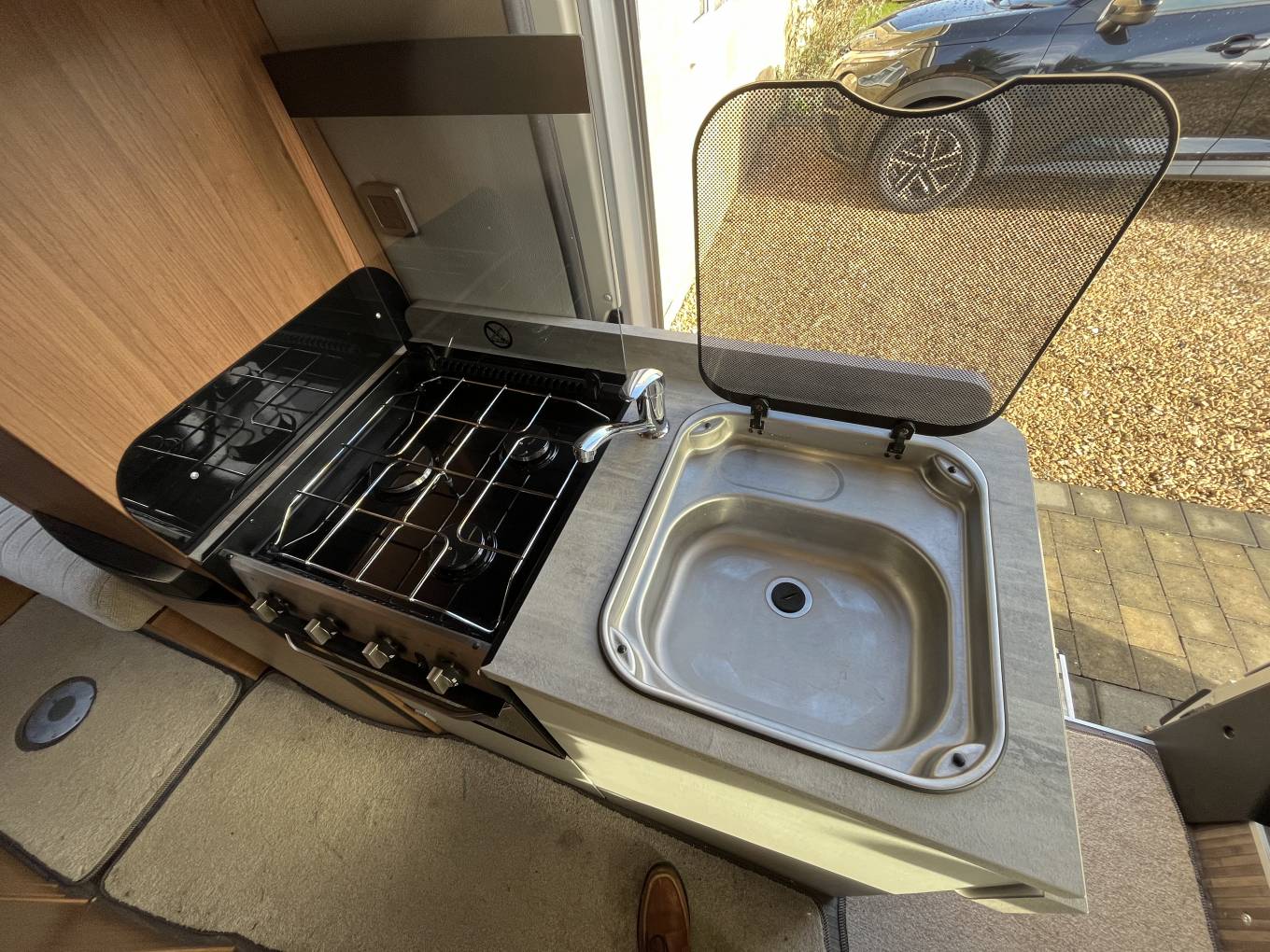 equipped with a 3-burner hob, oven/grill, microwave, and a 3-way fridge. The wet