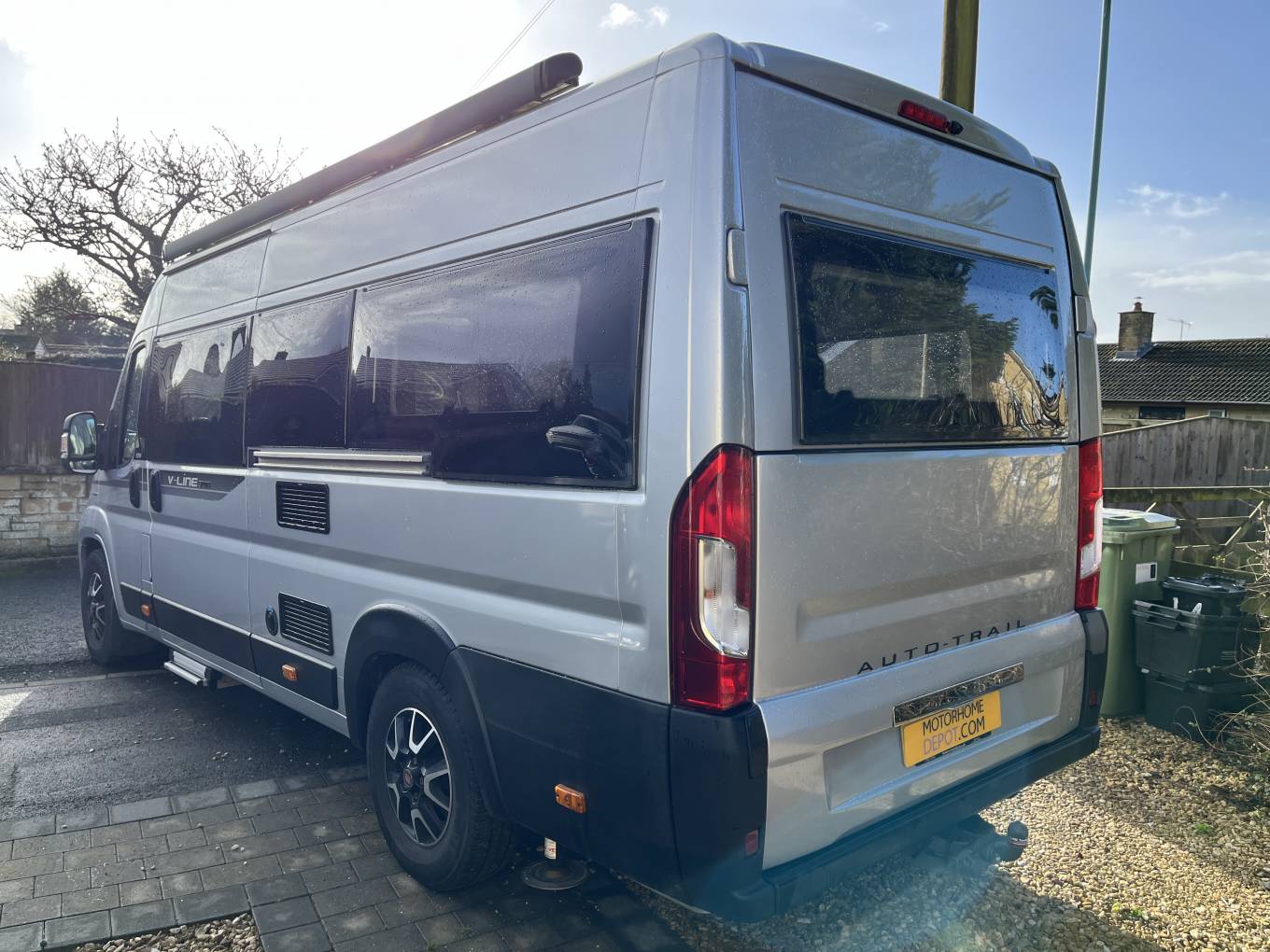 The 2018 Auto-Trail V-Line 636 SE Sport is a 6.36-meter-long campervan built on the Fiat Ducato chassis, powered by a 2.3-liter 150bhp diesel engine. The 'Sports' pack adds a GRP moulded rear back panel with a gas strut boot, enhancing storage access.