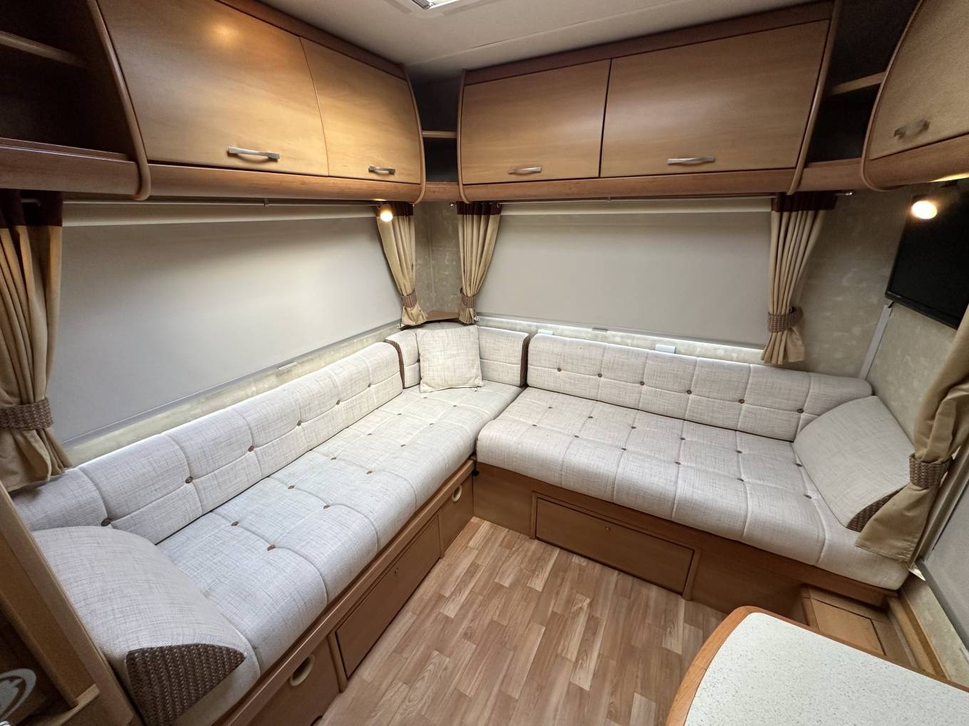 The outstanding feature of the Swift Lifestyle 590 is the spacious L-shaped rear lounge with a portrait window which spoils you with so much natural lighting and the perfect spot to enjoy all the views. At night this convieniently converts into a double bed.