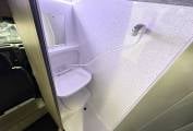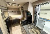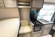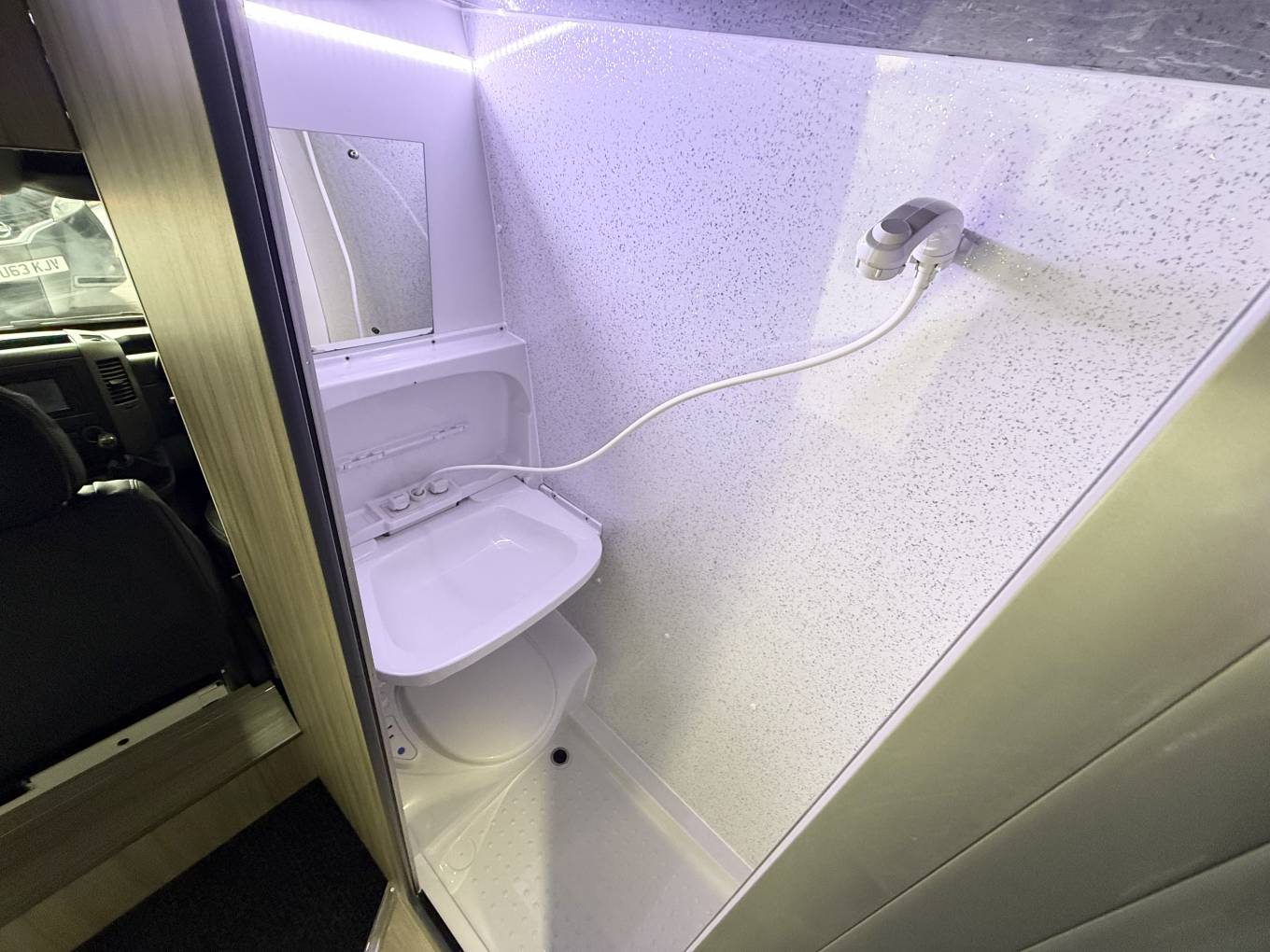 To the rear is a transverase double bed with storage underneath. Foldable dining table, Overhead lockers. There is a large central shower room accessed by a sliding space saving door. Inside is a Thetford Electric Flush Toilet, large shower.