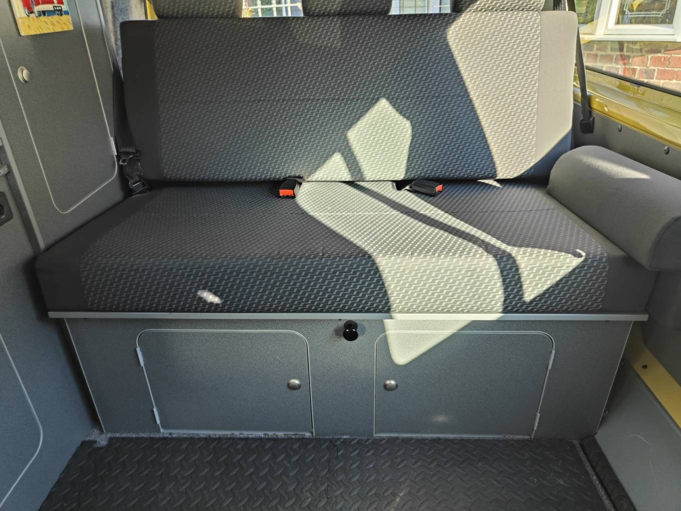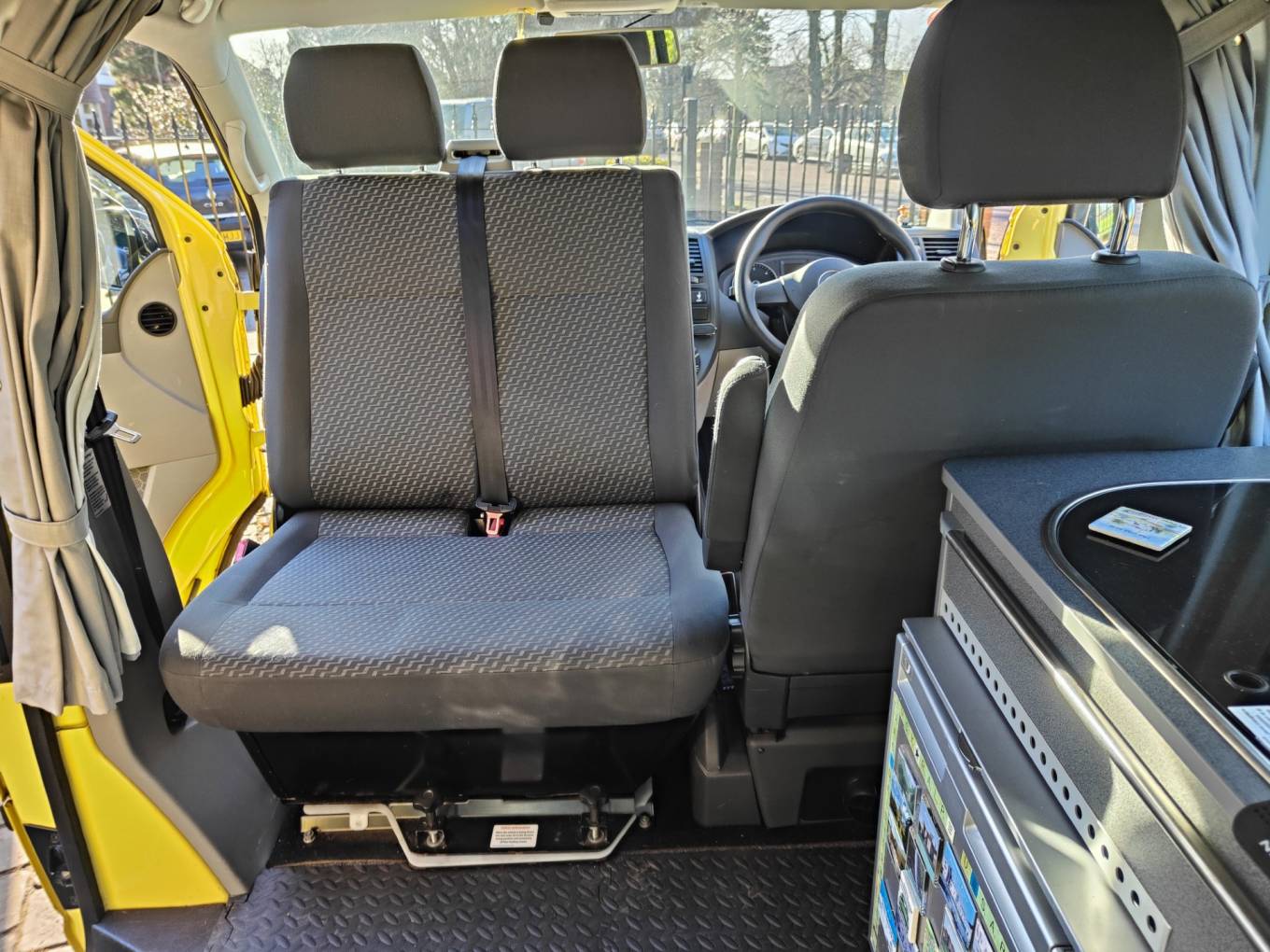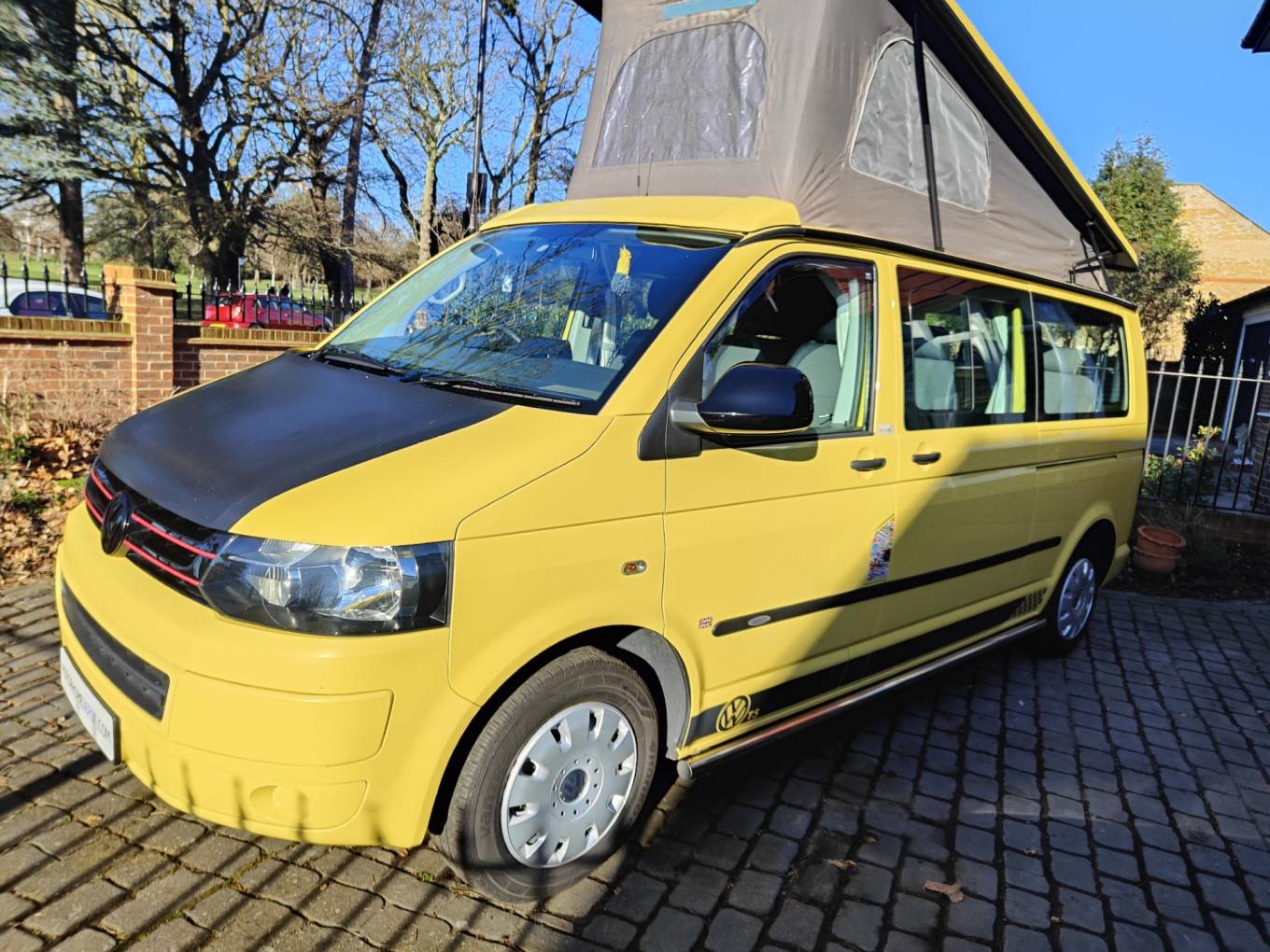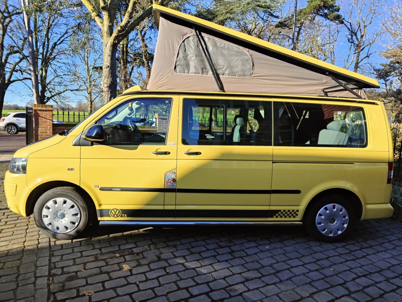 This is a great example of Bilbos long wheel base Komba model. This popular elevating roof camper is very versatile and includes seating for up to seven people all with seatbelts and sleeping for 4. Based on the excellent Volkswagen T5.1, this 1968cc derivative has the popular 5 speed manual gearbox and the desirable cab aircon. With only 81k miles from new by 1 fastidious owner with excellent service history. Both the double seat in the cab and the drivers seat rotate to form a seating area for 6 people with an additional bolt in seat with a 3 point seatbelt so versatile enough to use as a large family runaround. Excellent history with many extras including a 100 watt solar panel, towbar and a webasto diesel heater. Based in South East London and more pictures available.