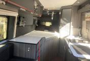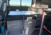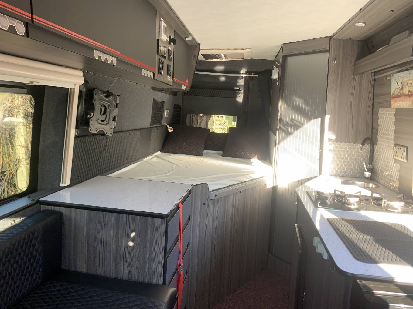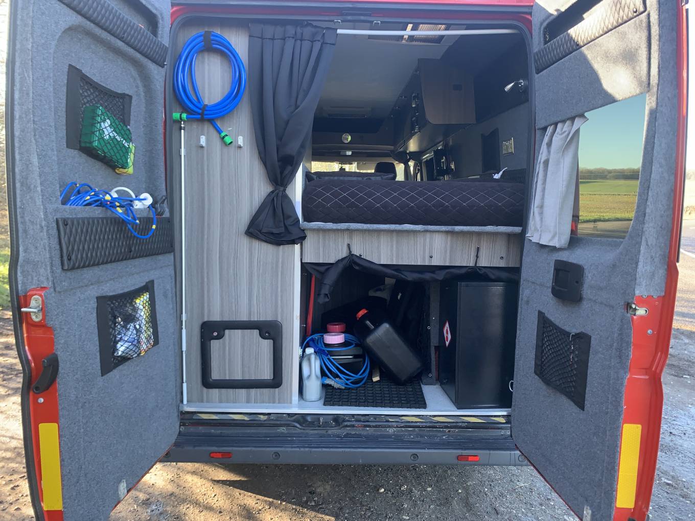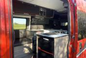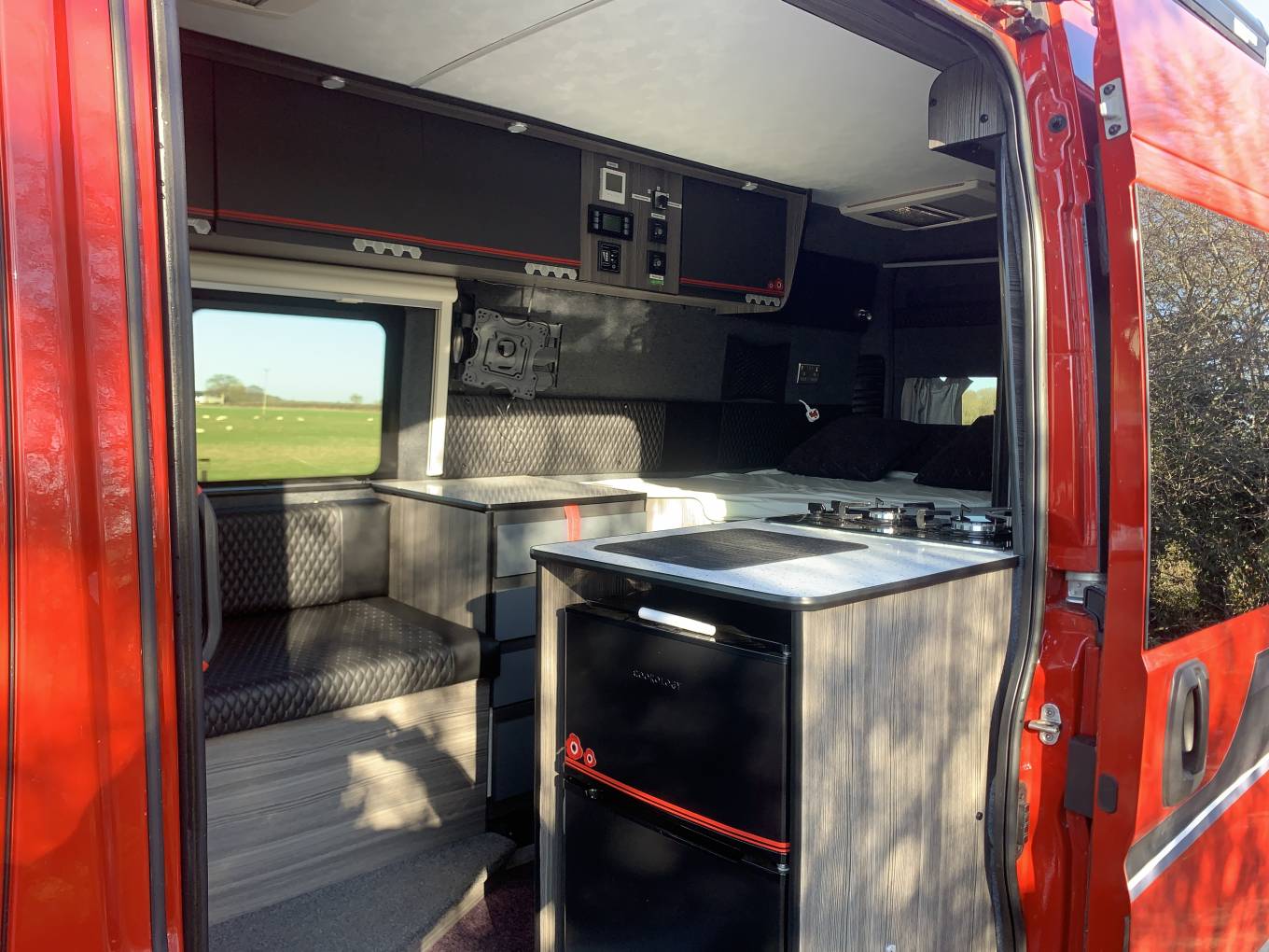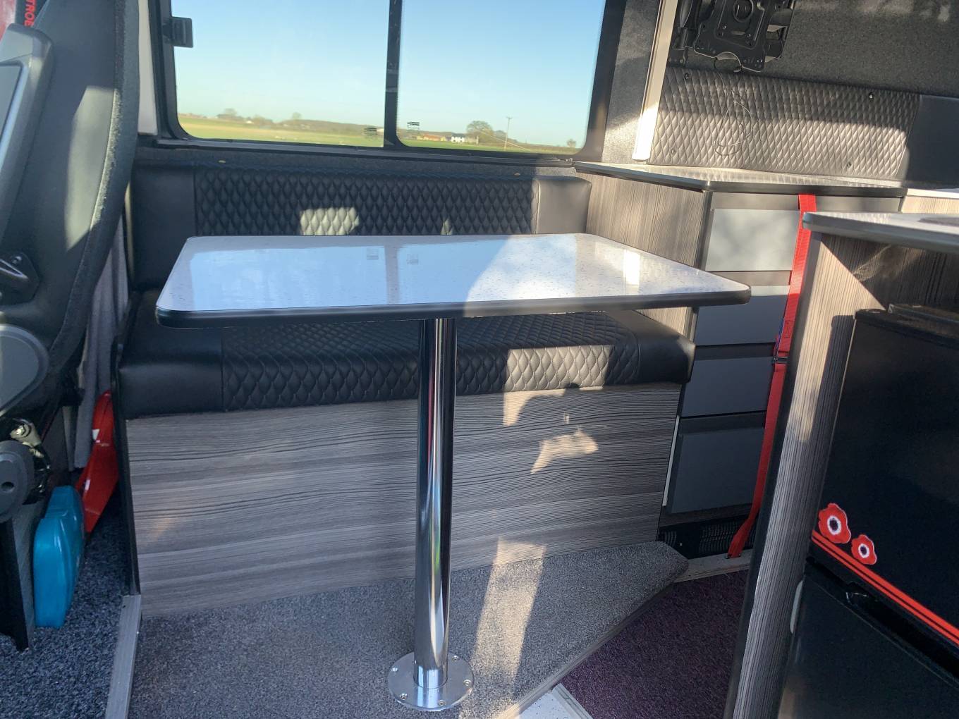 A very attractive camper in its eye catching livery, it has a rear french bed, adjacent washroom, mid lounge/dinette with premium grade upholstery.