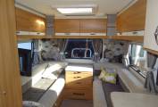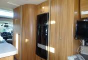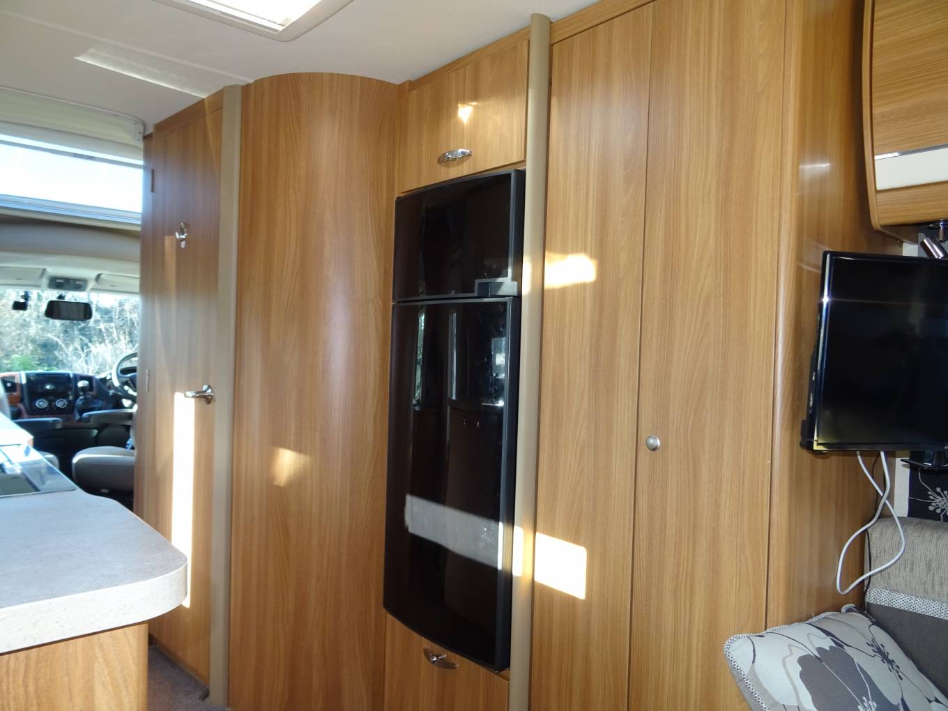 Moving to the rear you have the very comfortable rear lounge layout offering the option for a large double or 2 good sized singles with wall mounted television and storage space under the seats, this makes a great space for dining and a comfortable area to relax in. Moving round you have a large wardrobe. Moving on is the impressive washroom featuring a separate fully lined shower enclosure, hand basin with large mirror and electric flush Thetford toilet.