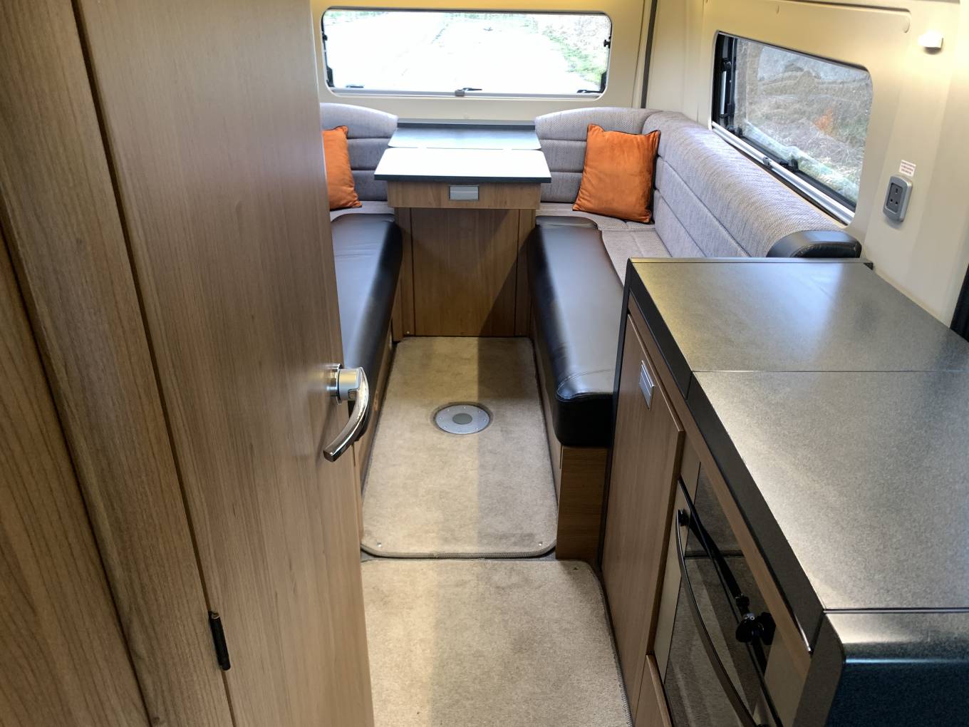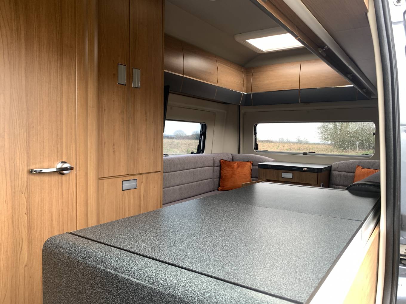 The washroom is as good as it gets even for much larger motorhomes, the fully lined shower cubicle can be partitioned from the washroom and is of a size that makes it practical to use.
