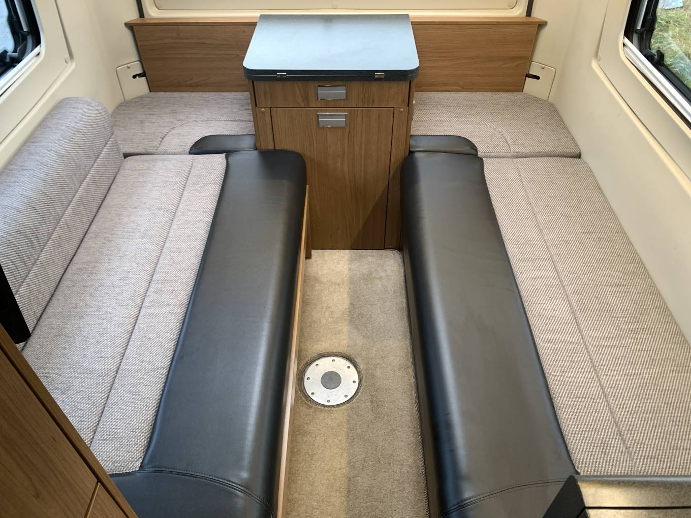 The side facing lounge seats can be used as two full length singles or a full transverse double.