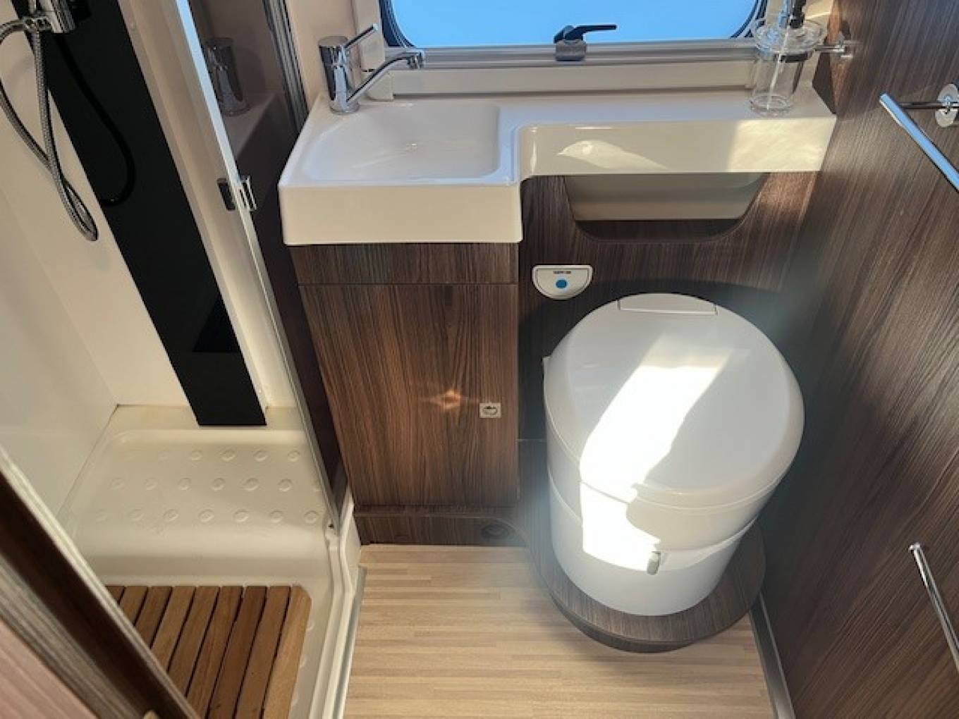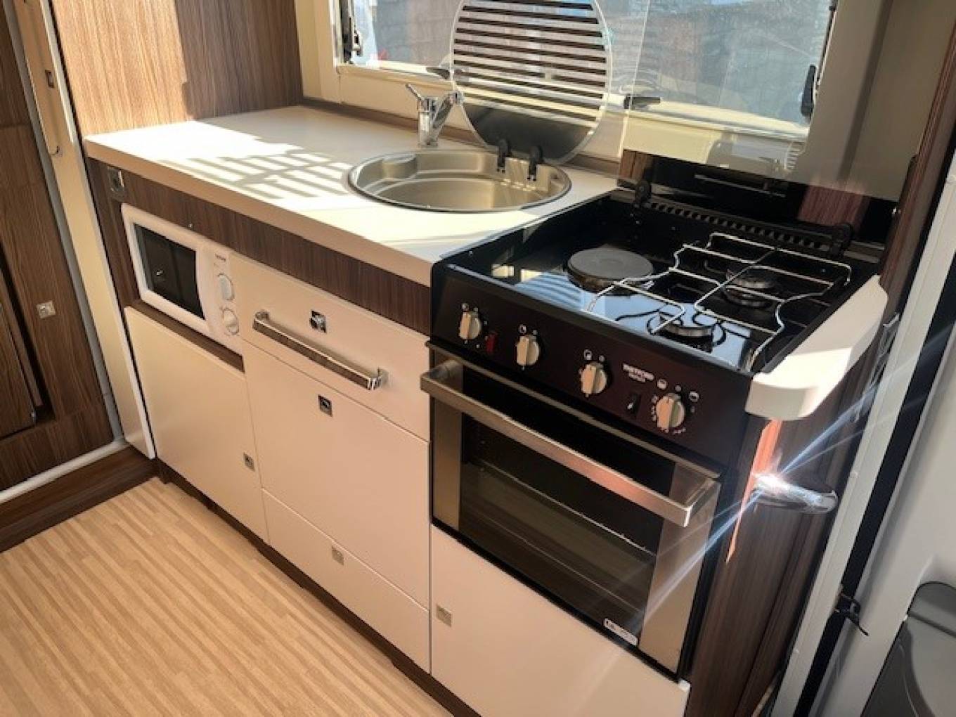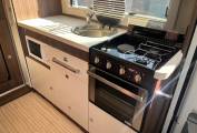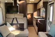Sleeping is via the Automated Drop Down Large Double Bed located in the Living Area. An Additional Double can also be made from the Dinette Seating