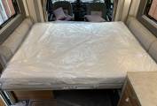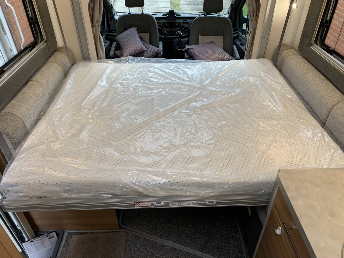bed, using the full width of the motorhome. Beneath the sofas are 2 travelling