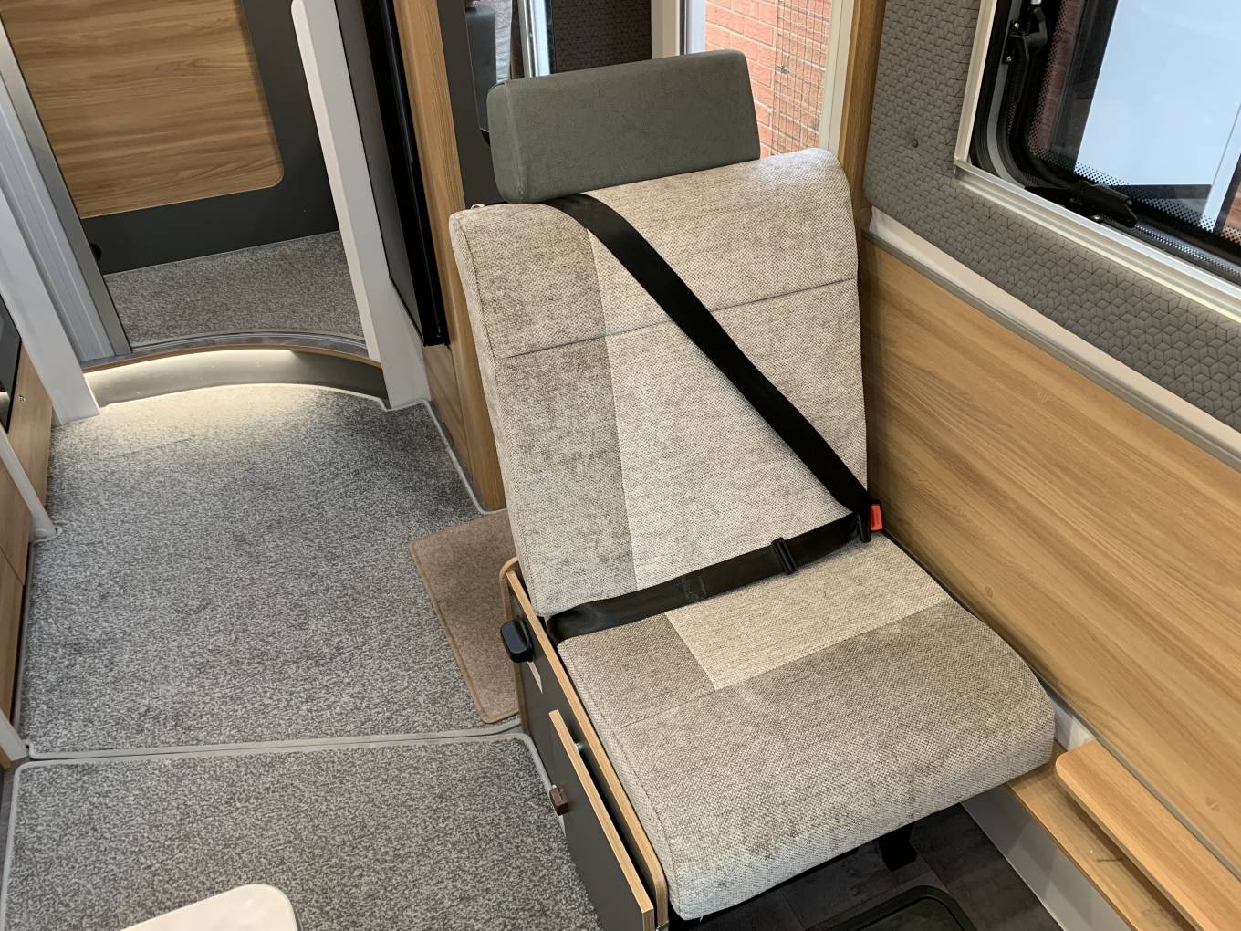 Upfront, it has 2 swivel seats, automatic gearbox, Remis