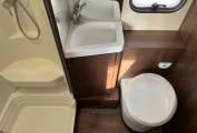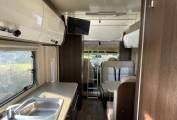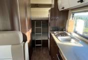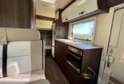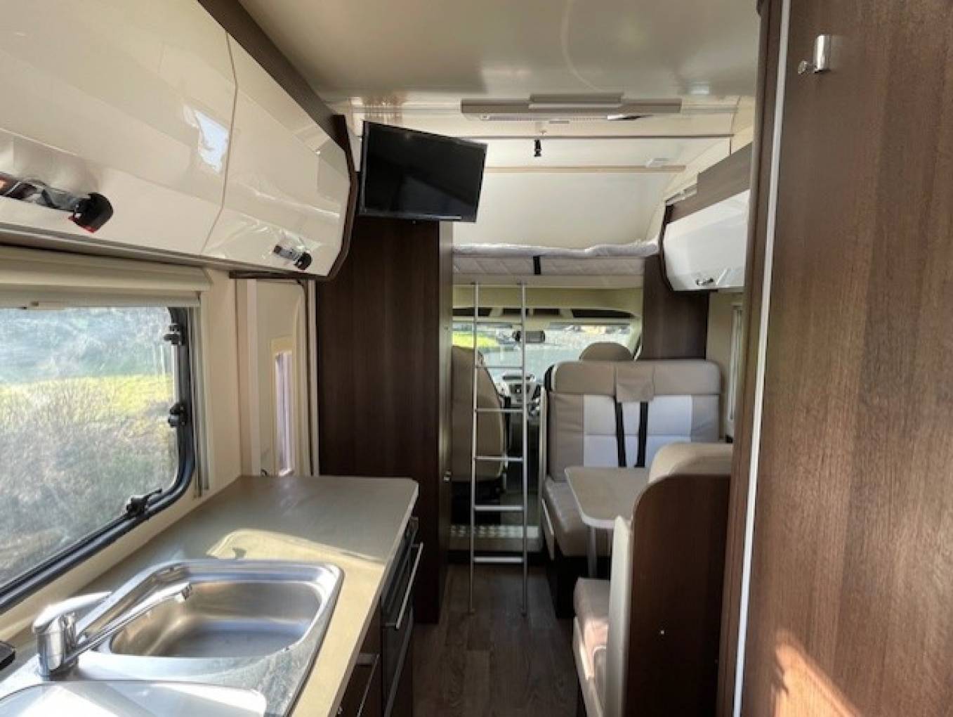 This model features a clever layout, including a large over cab bed, rear double bunk beds which convert to a large double door garage, and a dinette that converts into another double bed. Inside the Zefiro 675, you will find a well-equipped kitchen with a three-burner gas hob, a sink, a refrigerator, ample storage space for all your cooking needs and a spacious washroom with separate shower.