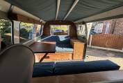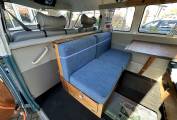 Inside, the camper is thoughtfully configured as a four-berth setup, providing ample sleeping space for family or friends. The well-designed interior offers a cozy yet functional living area, ensuring comfort while on the road. Despite its vintage appeal, modern enhancements make it a practical choice for today's adventurers.