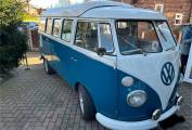 This 1967 Volkswagen Type 2 Split Screen Camper is an iconic classic, finished in a stunning Sea Blue and Cumulus White paint scheme. This beautifully maintained camper embodies the spirit of adventure, combining vintage charm with practical features for an unforgettable travel experience.