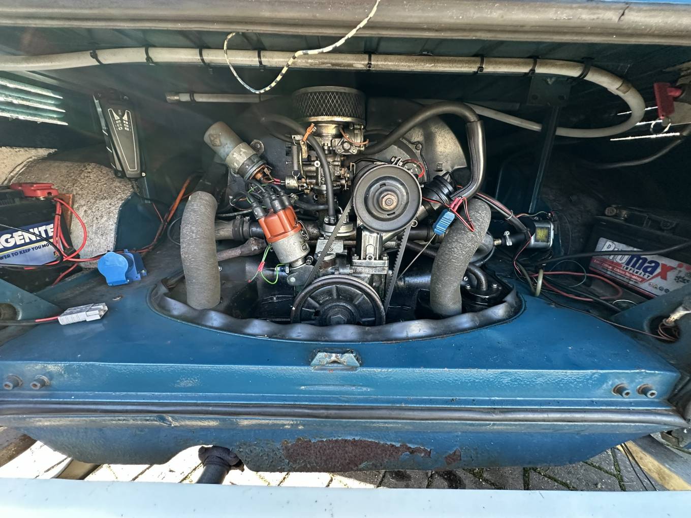 Under the rear hatch, you'll find a 1.5-litre air-cooled engine, delivering reliable and smooth performance for those long road trips. For added peace of mind, a fire-suppressing system has been installed in the engine bay, enhancing safety without compromising the vehicle's originality.